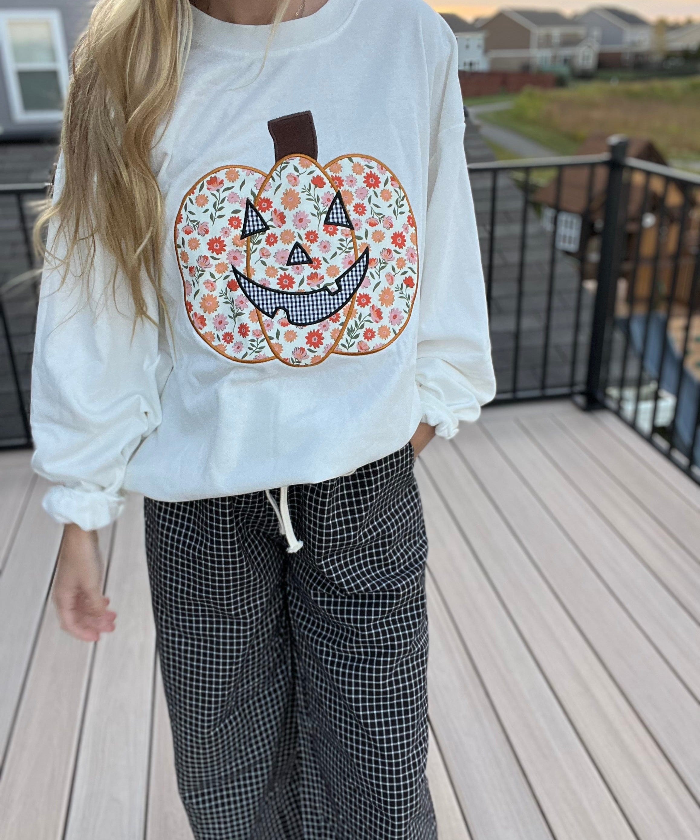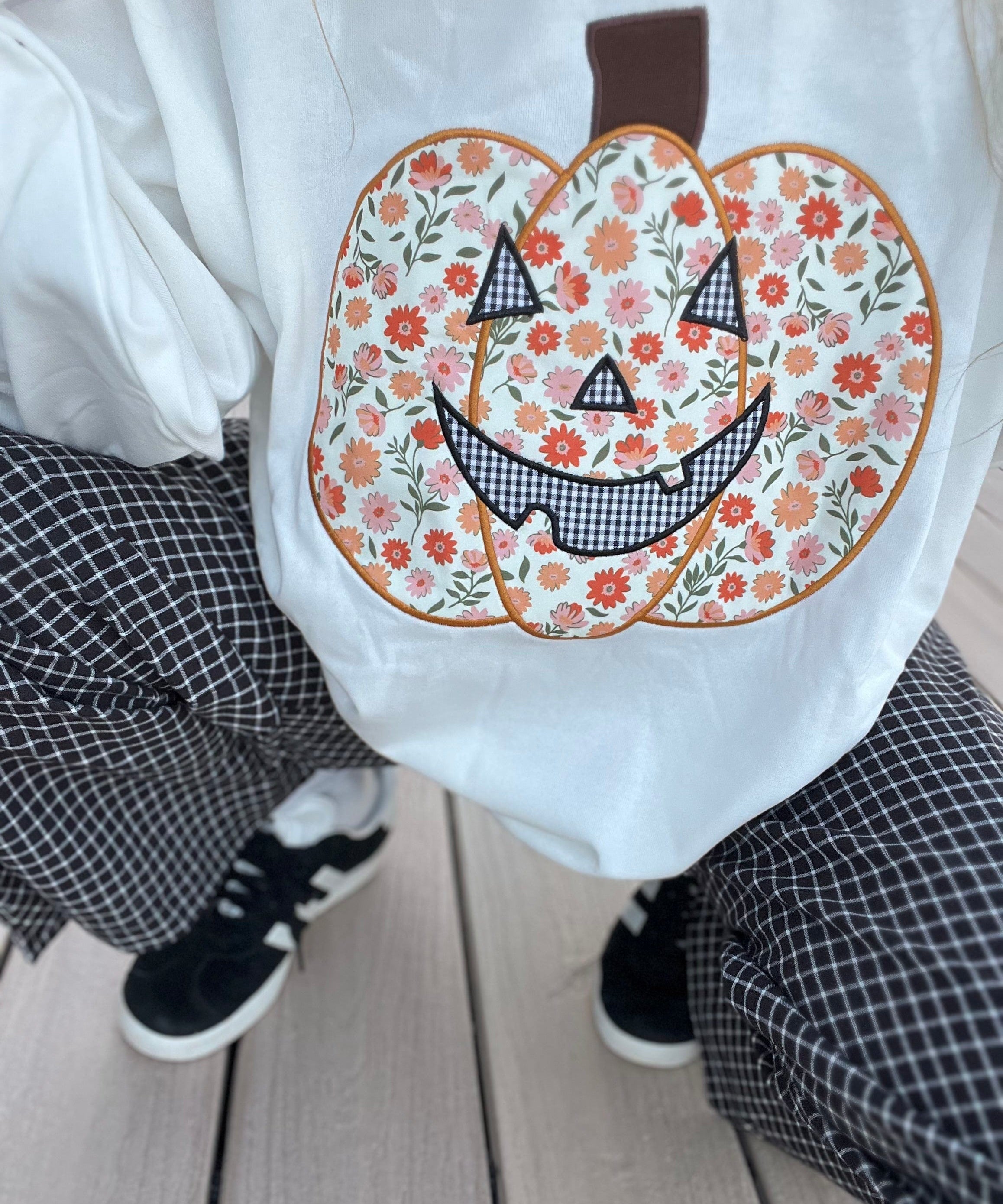 Crewneck Top With Floral Printed Pumpkin Patchwork