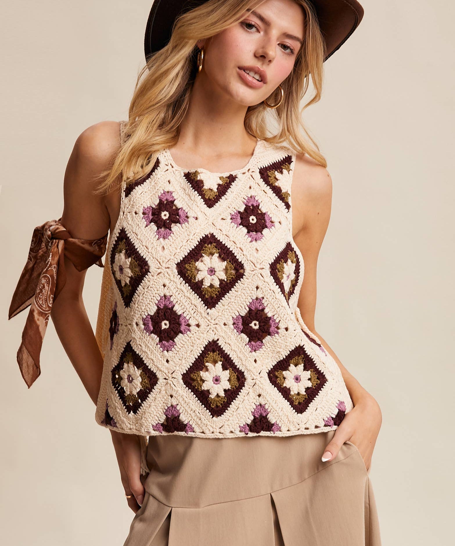 Crochet Granny Square Tassel Tie Vest