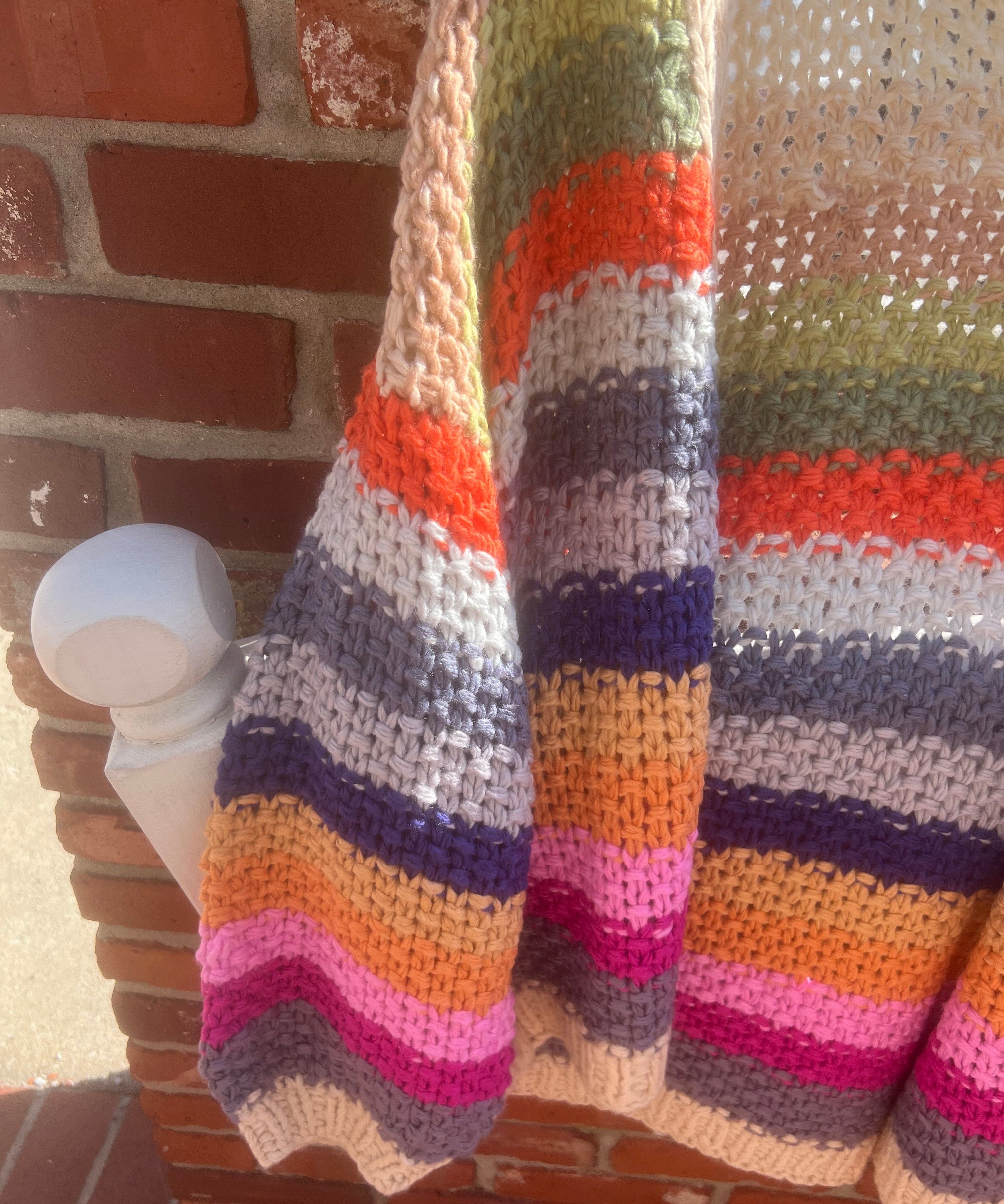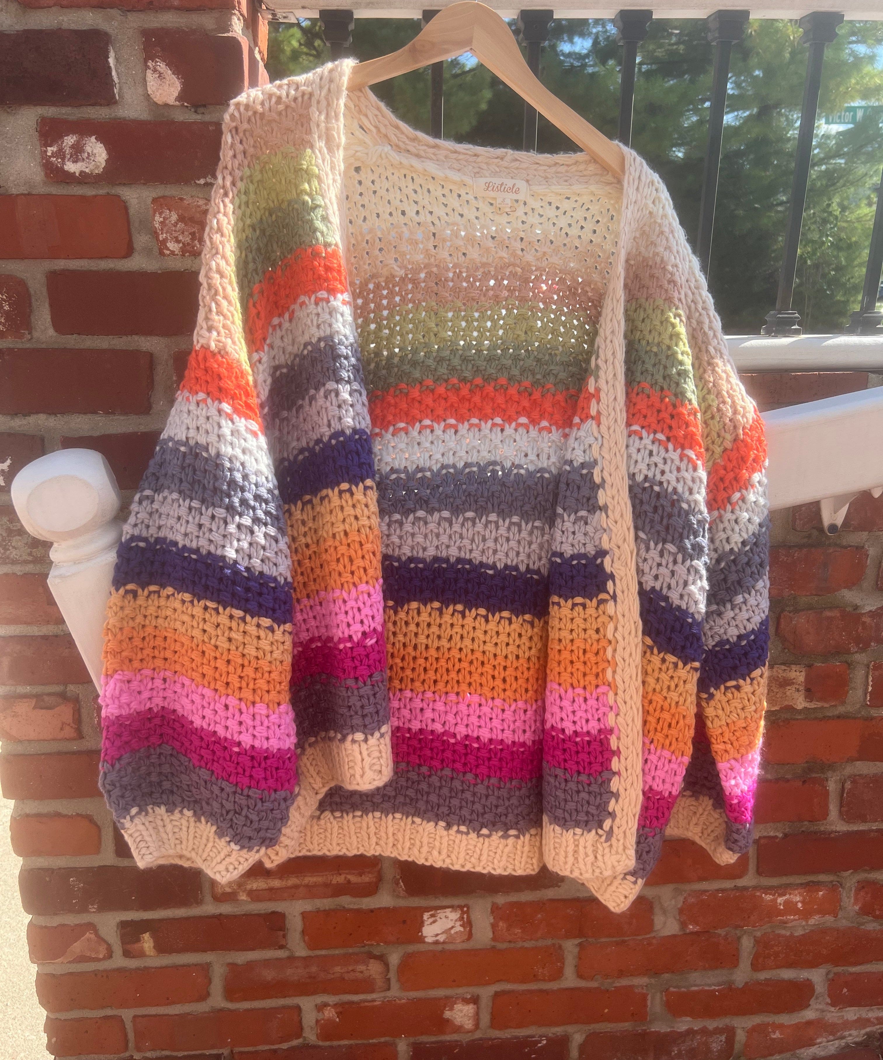 Rainbow Hand-Crochet Open Cardigan