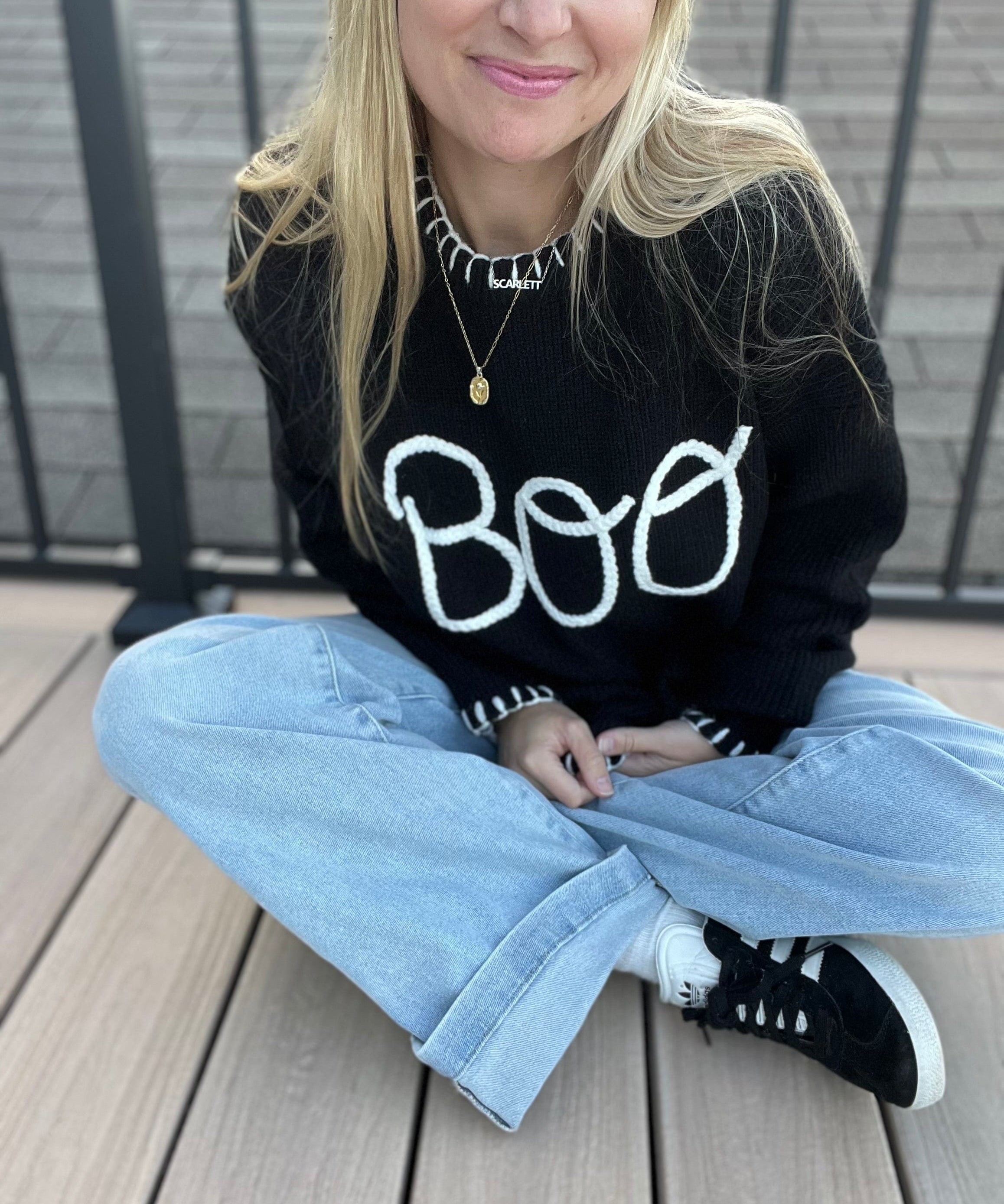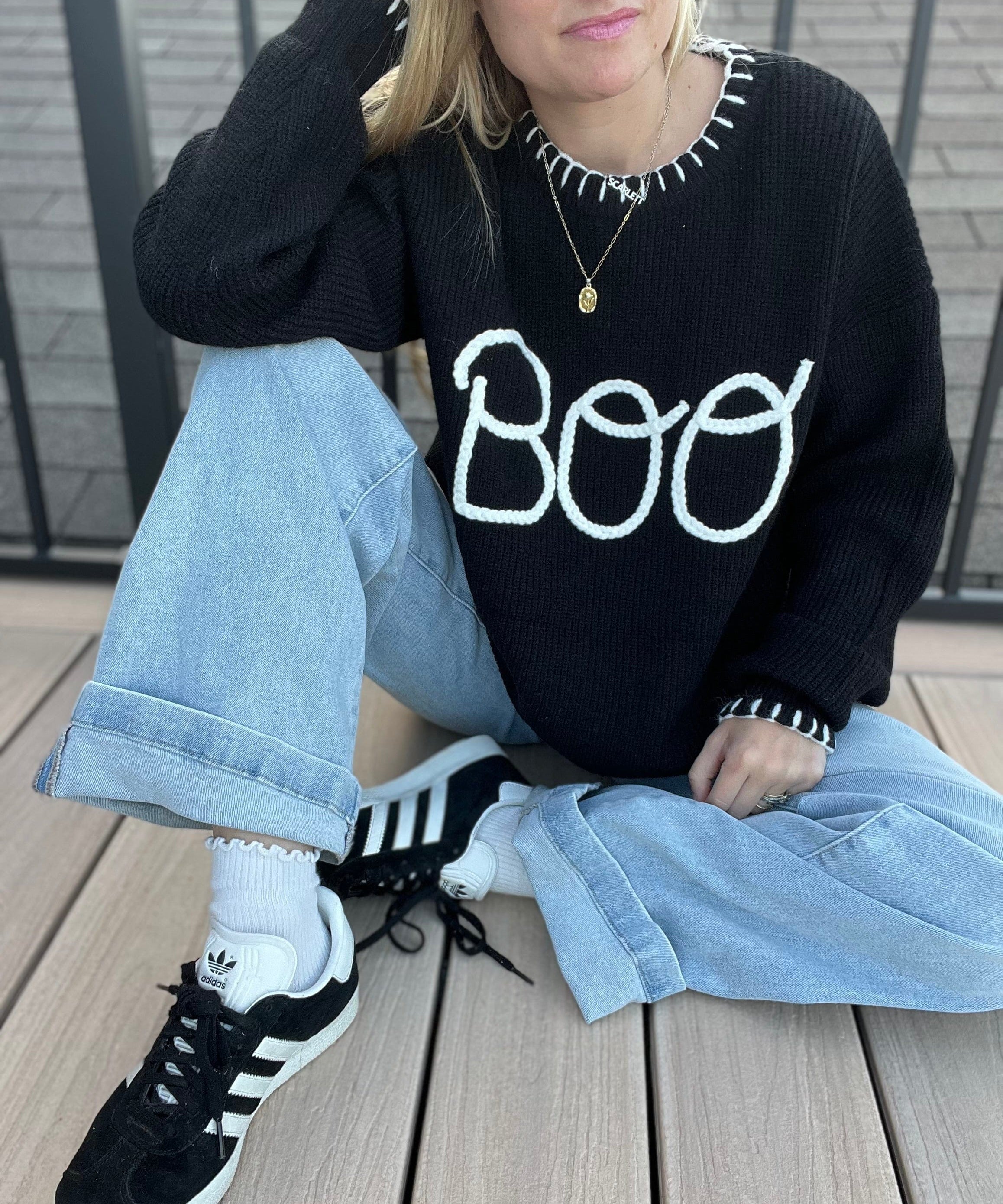 Halloween "Boo" Sweater With 3D Braided Writing