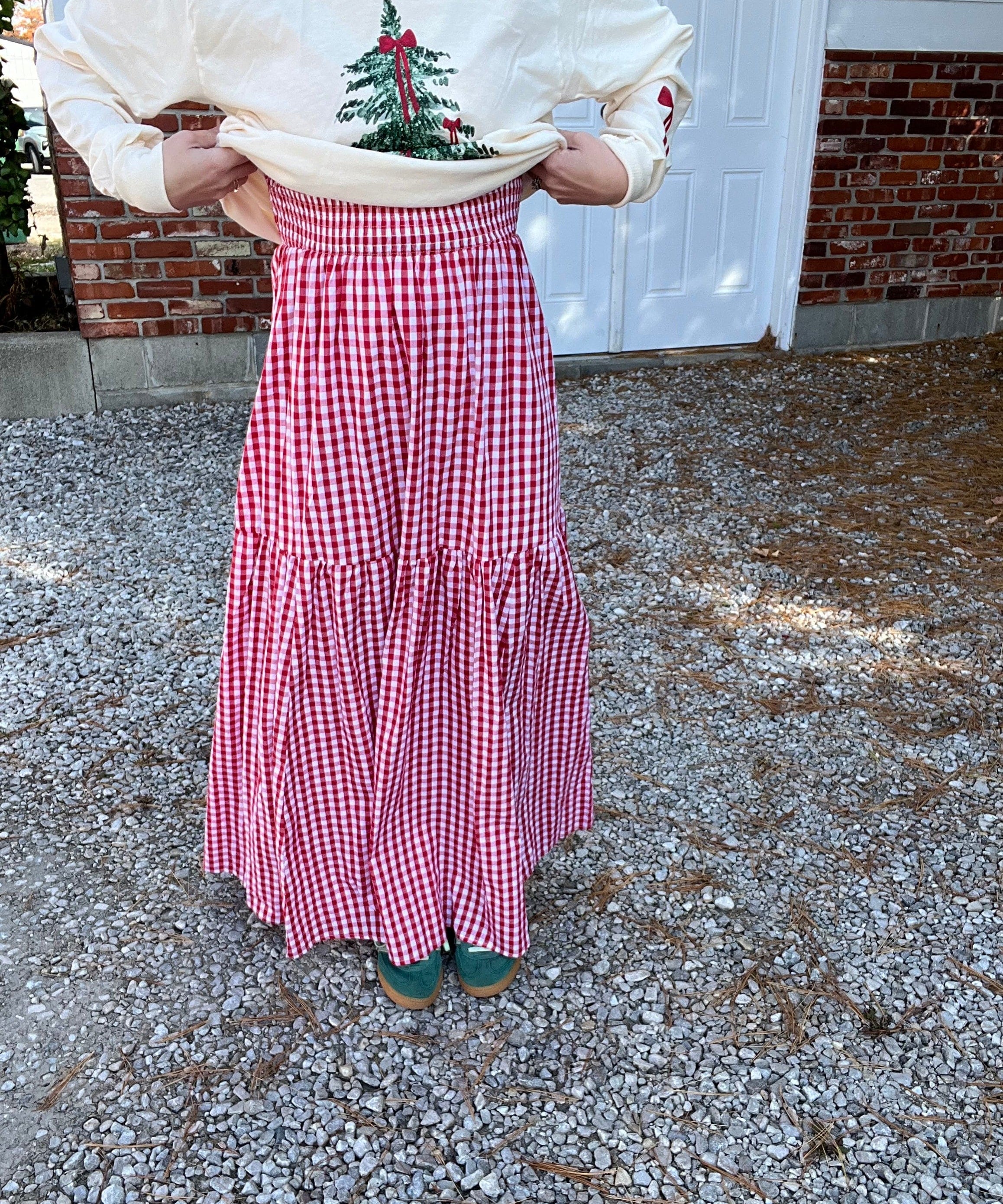 Red Gingham Smocked Bodice Maxi Dress