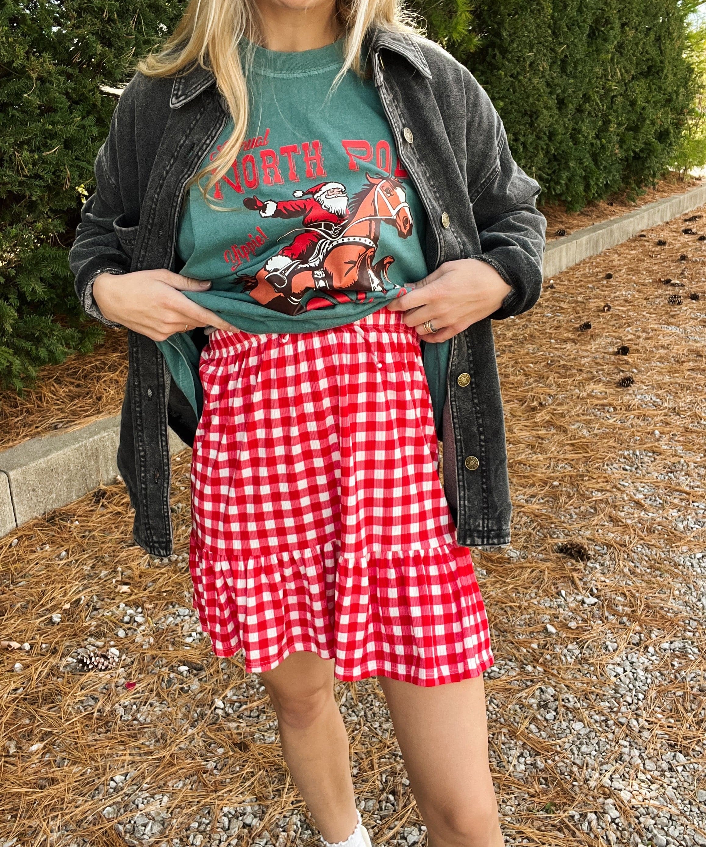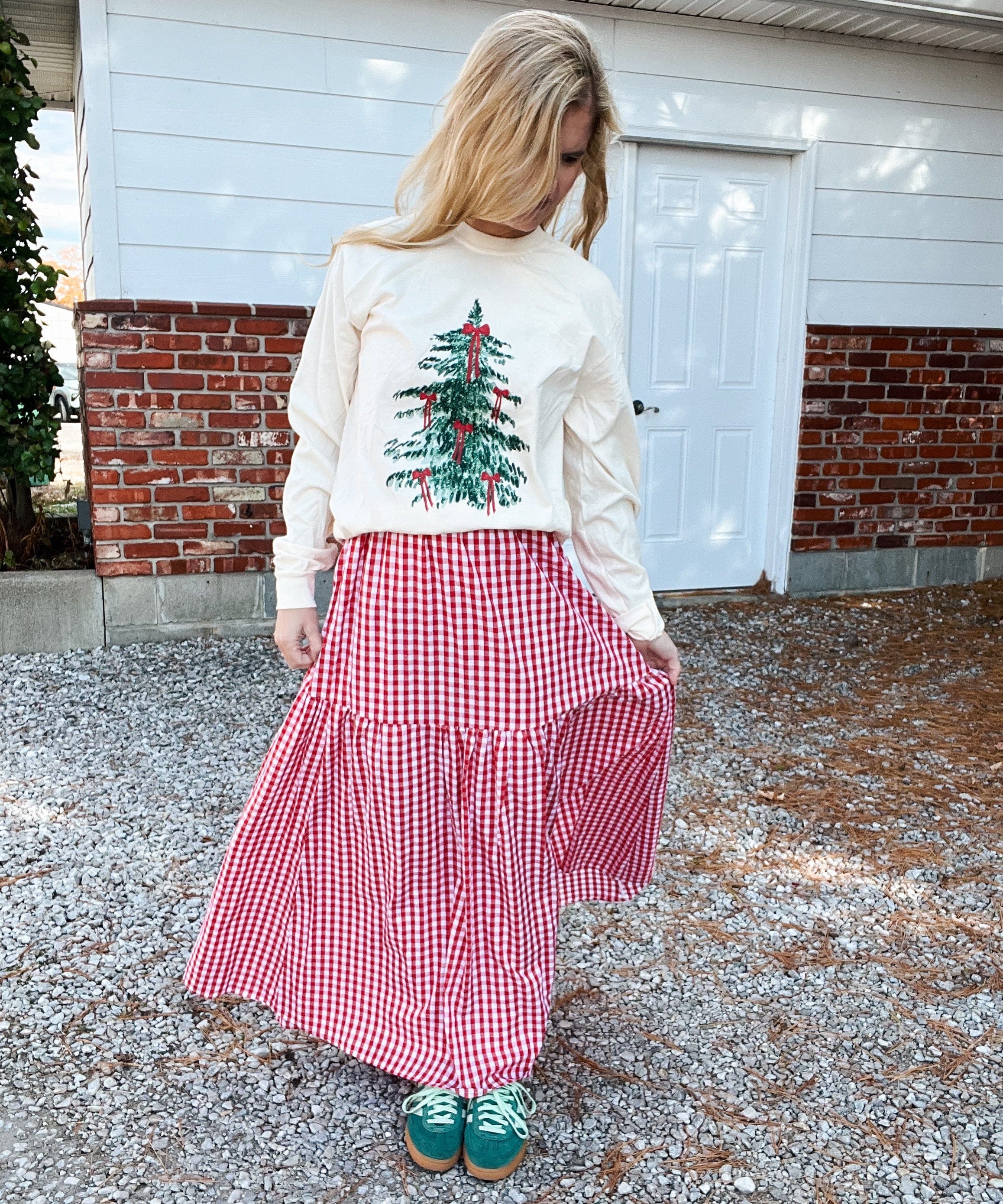 Checkered X-Mas Tree Applique (Tee, Long or Crew)