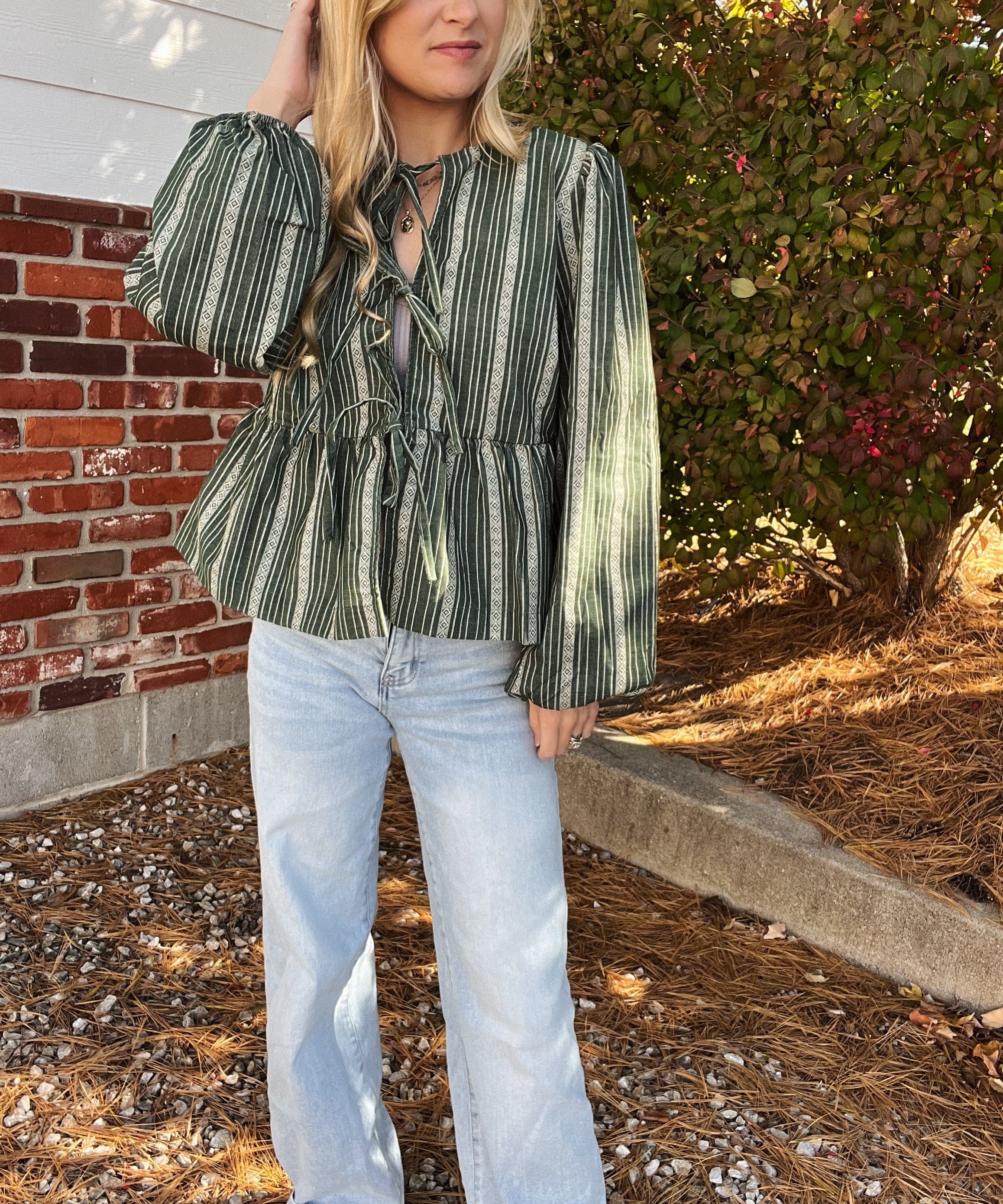 Corduroy Long Sleeve Bow Tie Front Peplum Blouse