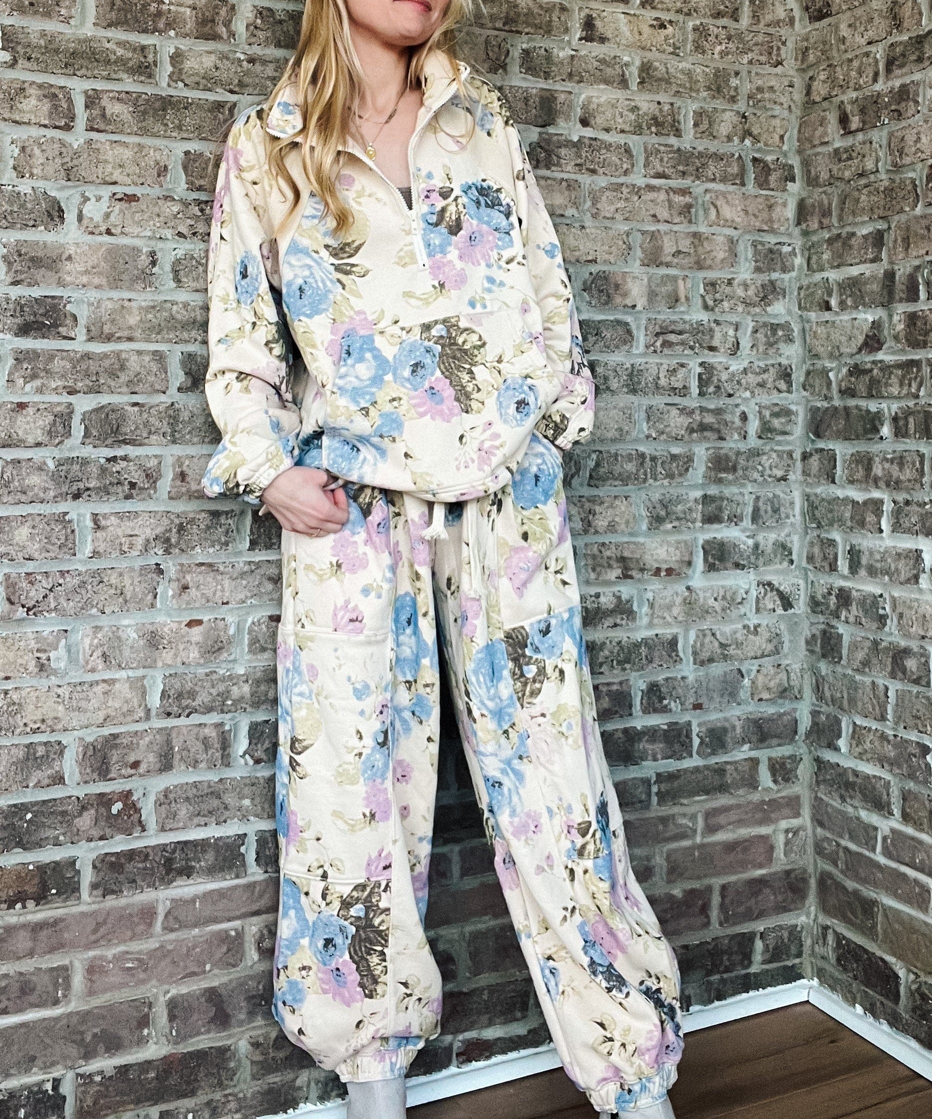 Flower Printed Quarter Zip