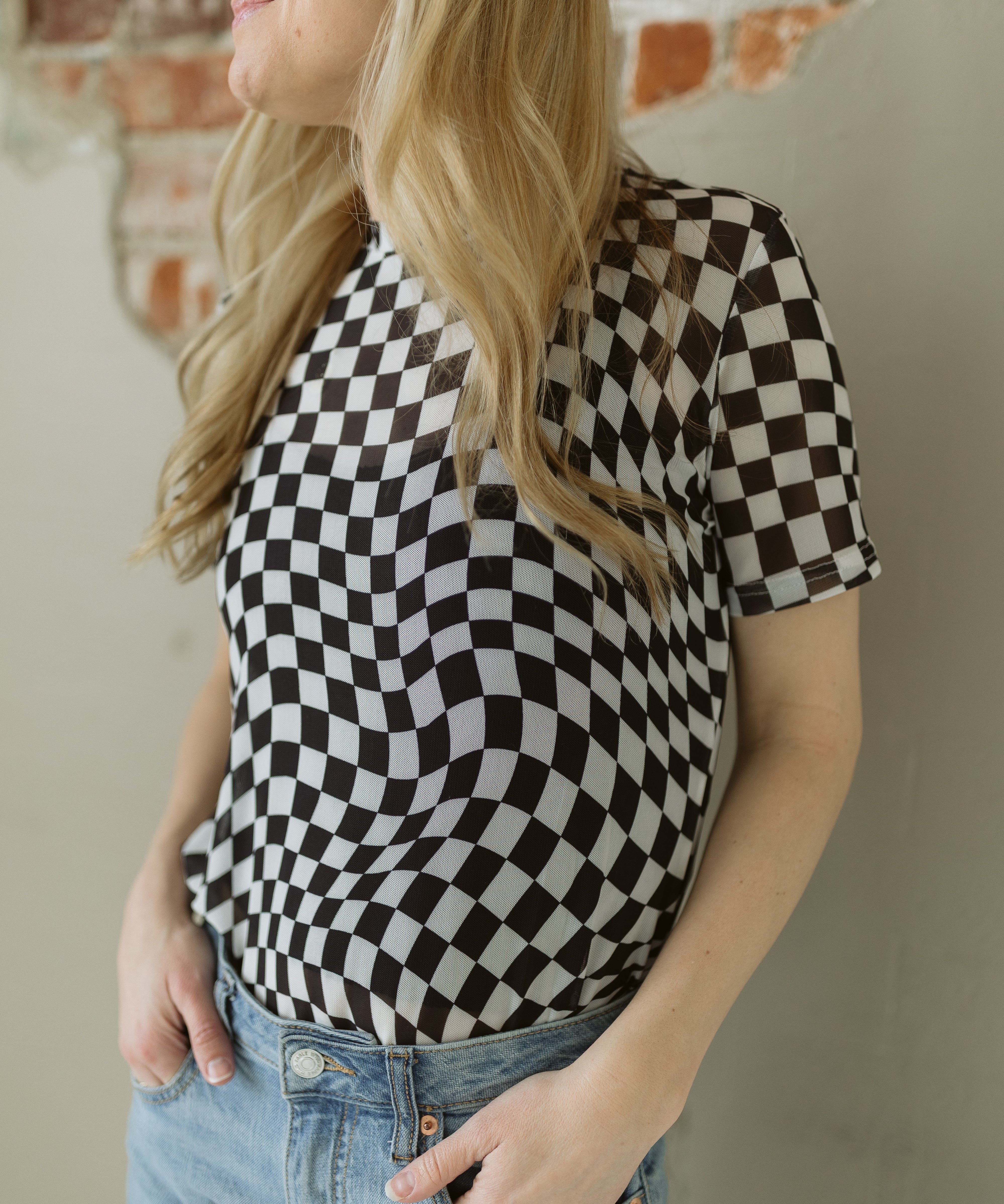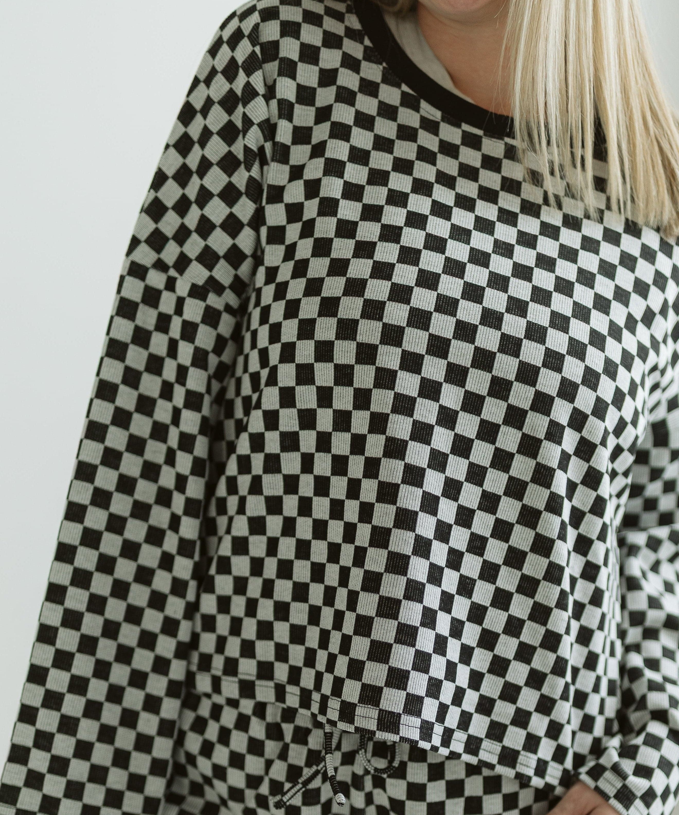 Checker Jersey Long Sleeve Top