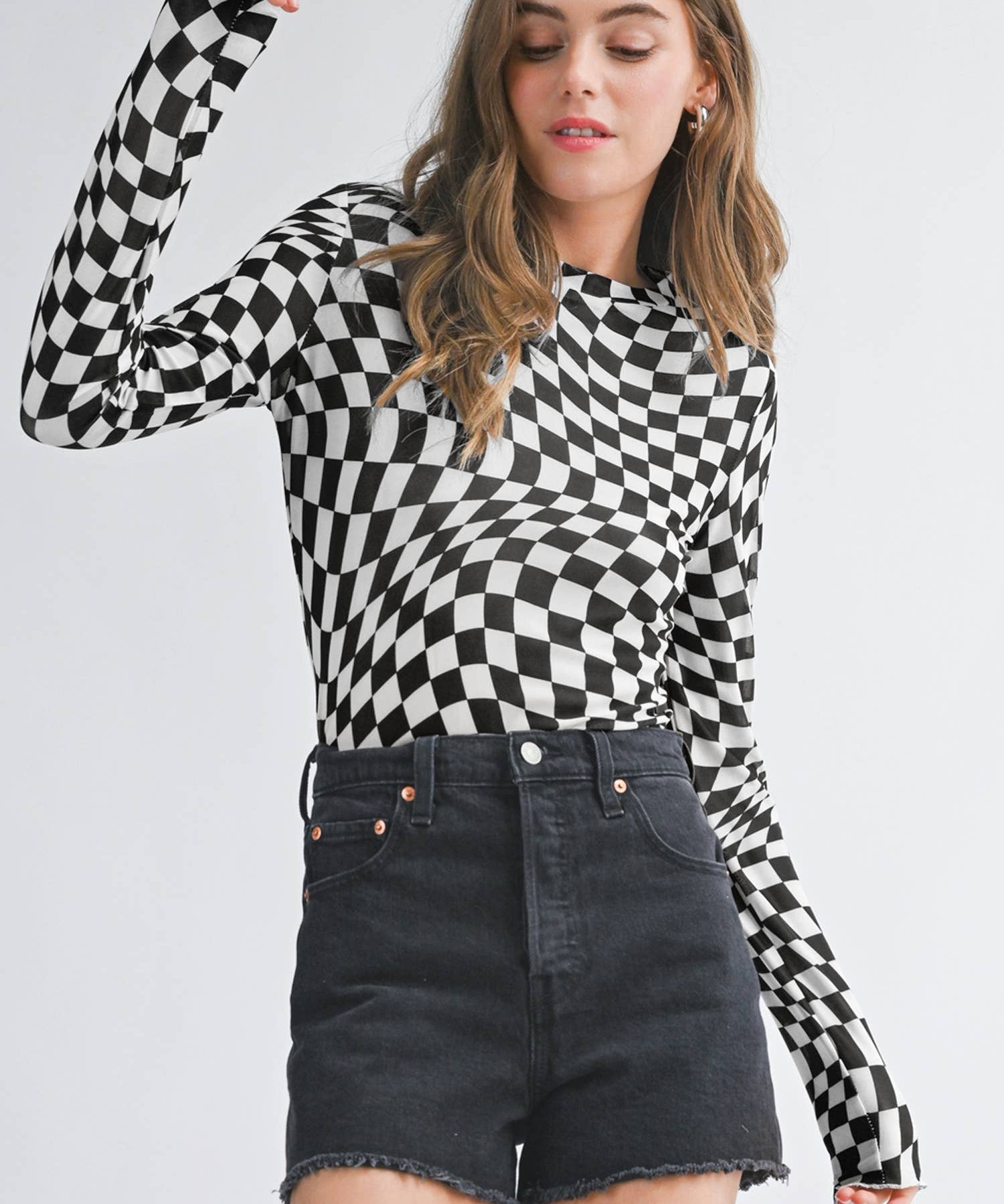 Checkered Pattern Long Sleeve Top