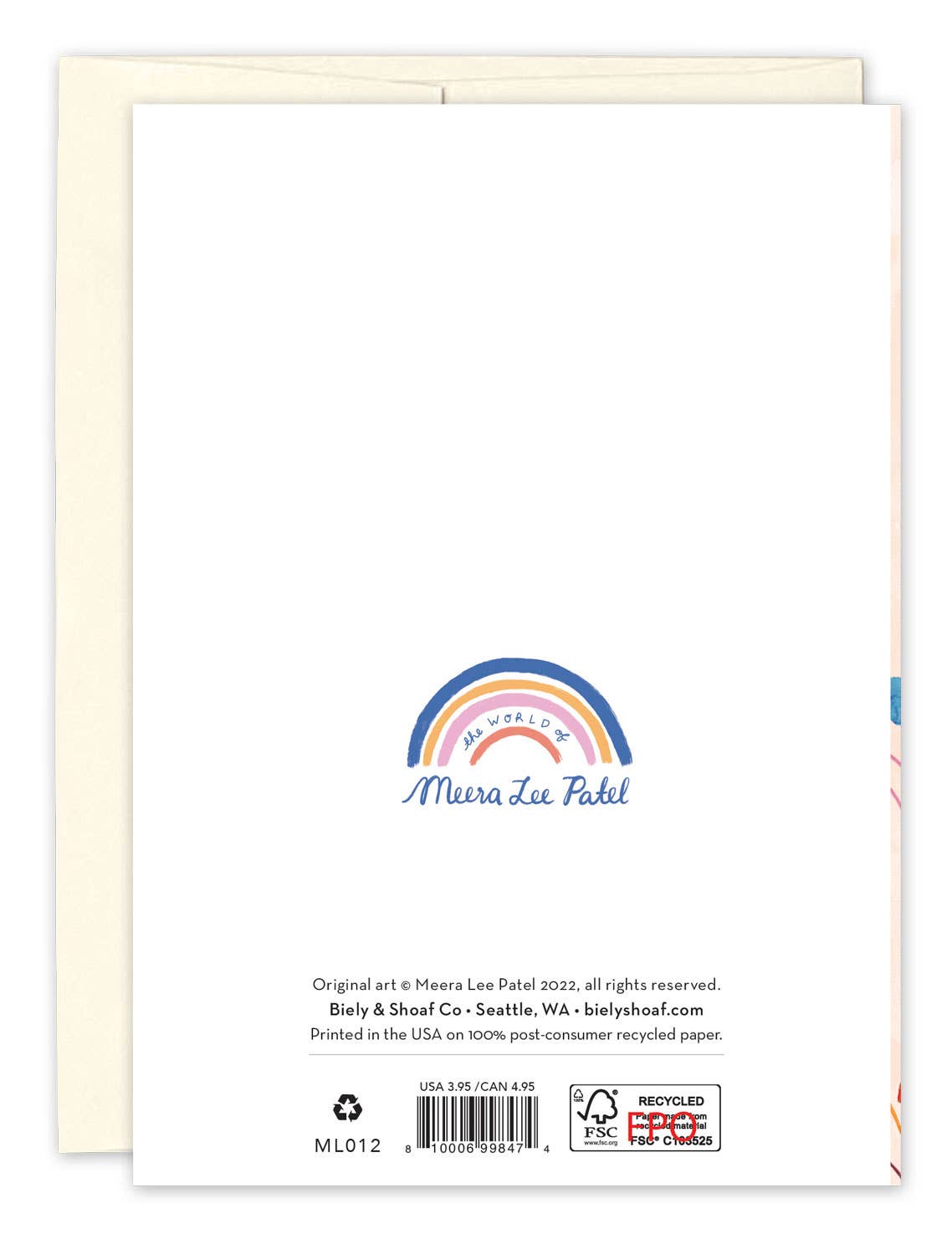Card is blank inside. • Size: A6, 4.6" x 6.4" • Illustrated by Meera Lee Patel • Full-color inside • Envelope color: White • Printed in the USA on high-quality recycled post-consumer waste paper • Pre-priced • By default cards come without cello packaging. Please message us for cello options. About The Artist: Meera Lee Patel is a self-taught writer and artist who believes that anything is possible. She is the author of My Friend Fear: Finding Magic in the Unknown, a beautiful meditation on fear and how it can help guide us to become who we really are. She is also the author of two journals for self-exploration, Start Where You Are and Made Out of Stars.