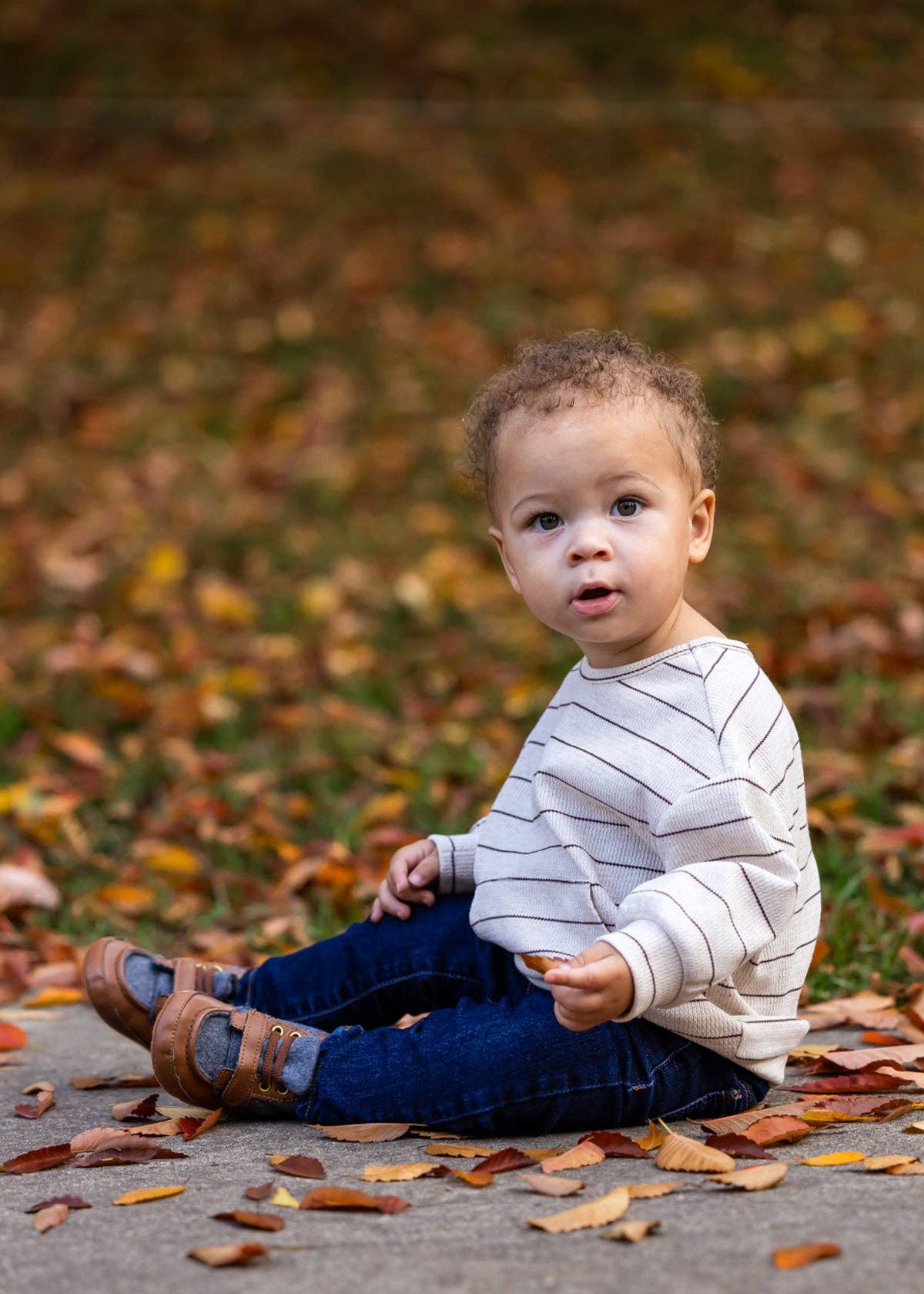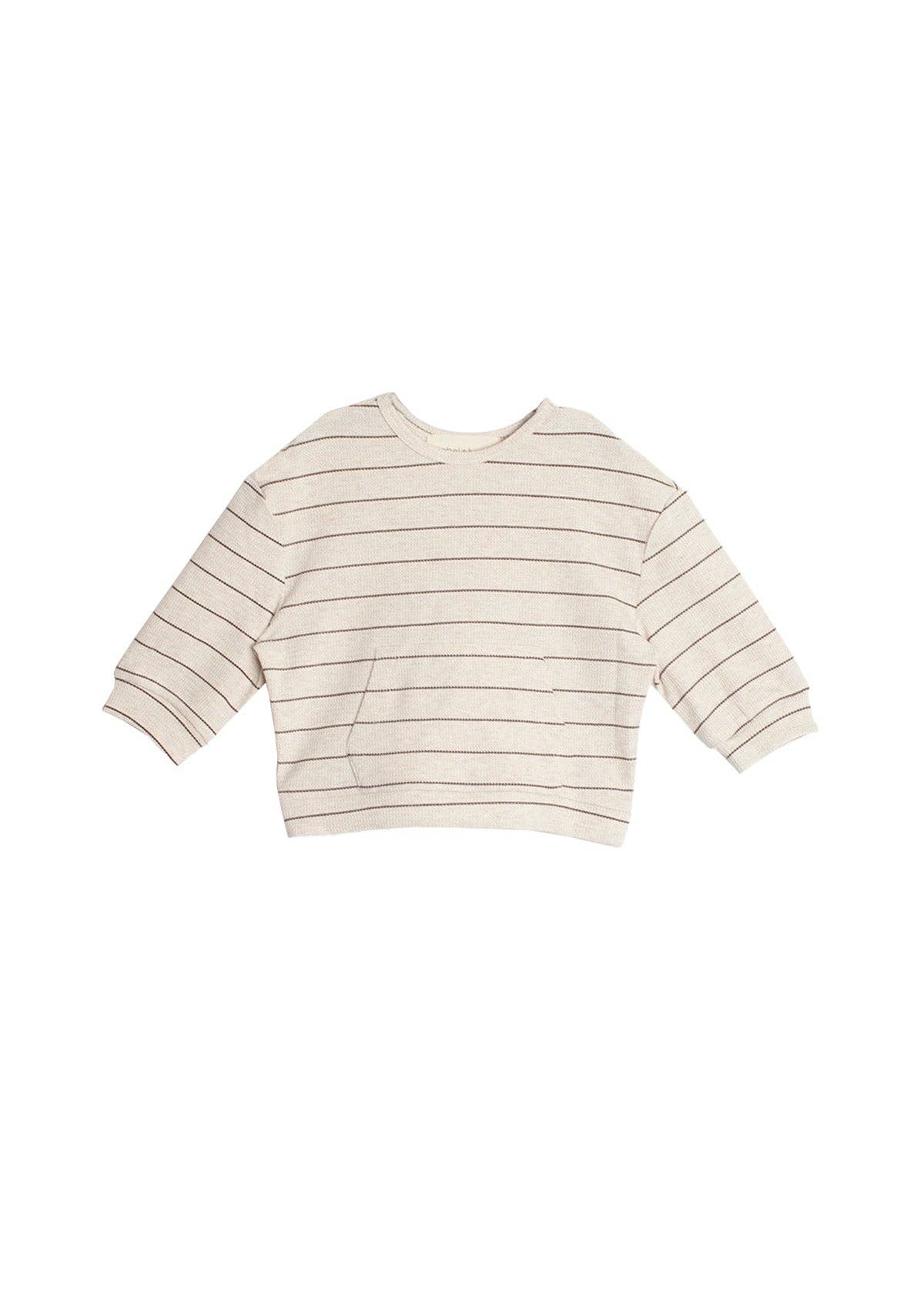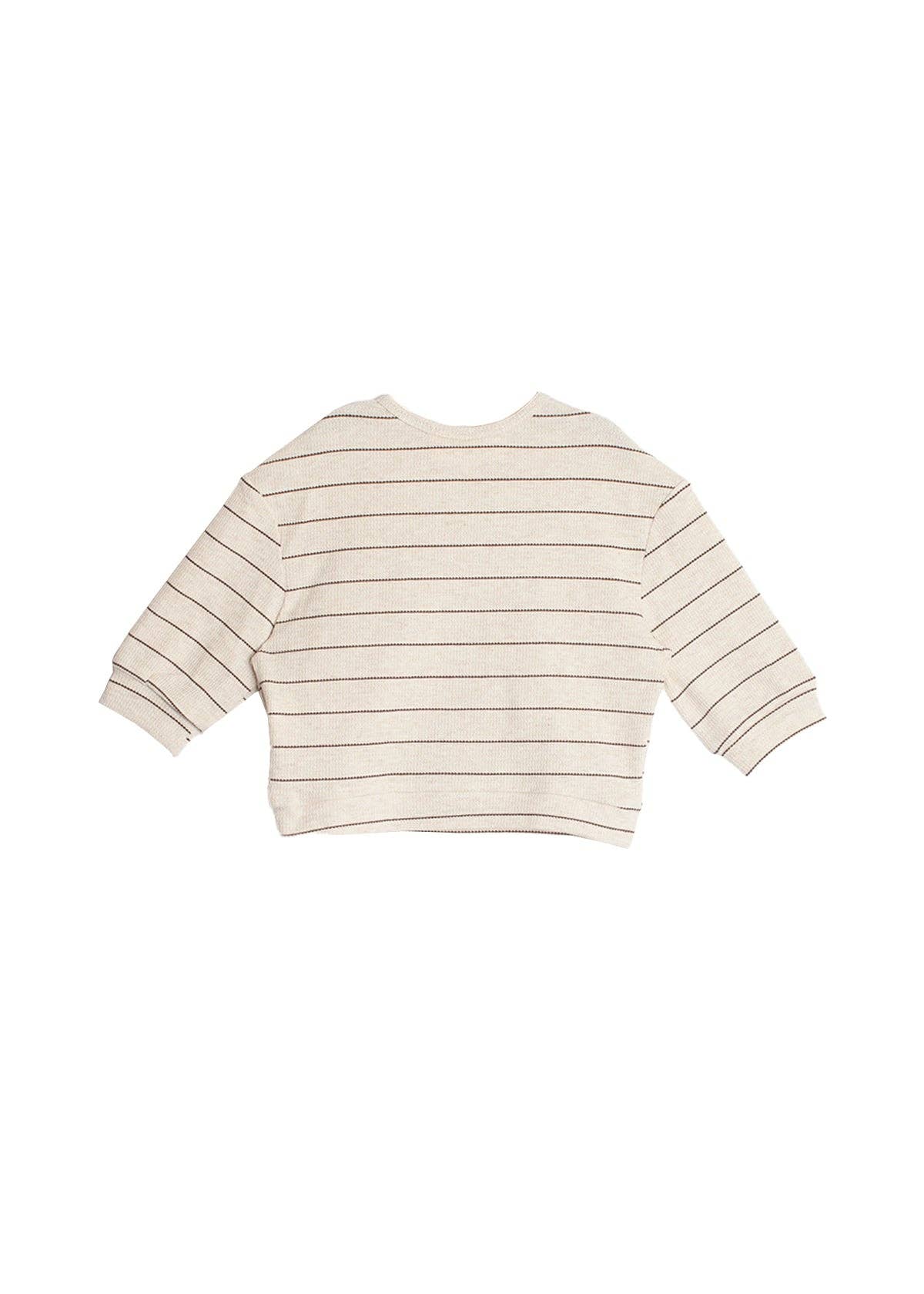 This boys' top features a classic beige base with subtle brown stripes, offering a timeless and versatile look. The long sleeves and relaxed fit provide comfort and ease of movement, making it perfect for layering or wearing on its own. The neutral tones and simple design make it a wardrobe essential for any occasion. Fabric Care 93% POLYESTER 4% COTTON 3% SPANDEX Machine Wash Cold | Line Dry Do Not Bleach