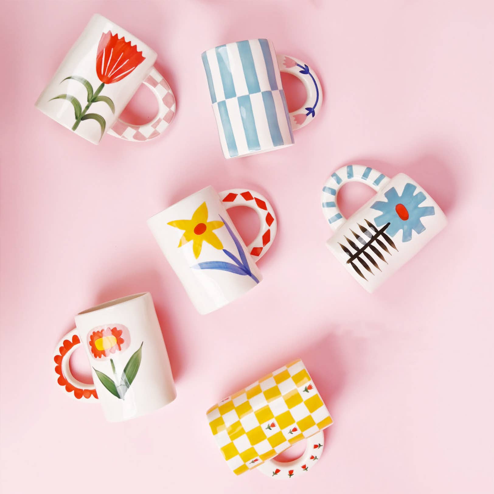 Hand-Painted Red Floral Mug Each piece is carefully hand-painted with 100% stoneware and fired at 2282 °F. Featuring playful floral design and a bold, patterned handle. - DIA 3” X H4.7”, 14 oz| 414ml - Dishwasher and microwave safe ChagoArt was founded in Los Angeles in 2024 by Chaoqun Chen. A portion of our profits is donated to children's hospital. Retailers: gift shop, planter greenery, nursery stores, coffee flower floral stores, home goods stores, general stores, boutique, garden center, museum store, home kitchen store, bookstore, stationery, candle store. People also consider: gift for coffee & tea lover, Eco-Conscious, gifts under $15, novelty gift, Christmas gift, stocking stuffers, fall winter gift, Christmas filler, gift for mom, gift for her, gift for friends, family birthday, holiday gift, drinking cups, reusable coffee cups, large coffee mug, pottery mug, cute artistic tea cup, colorful drinkware, floral patterns, handcrafted drinkware