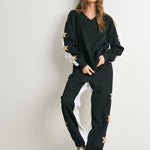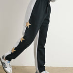 Elevate your casual style with these Color Block Sweatpants featuring eye-catching star details. Crafted from soft, breathable fabric, they offer maximum comfort while adding a playful, modern touch to your wardrobe. Perfect for lounging or running errands, these sweatpants combine functionality with a fun, bold design. Pair them with your favorite hoodie or tee for an effortlessly cool look.