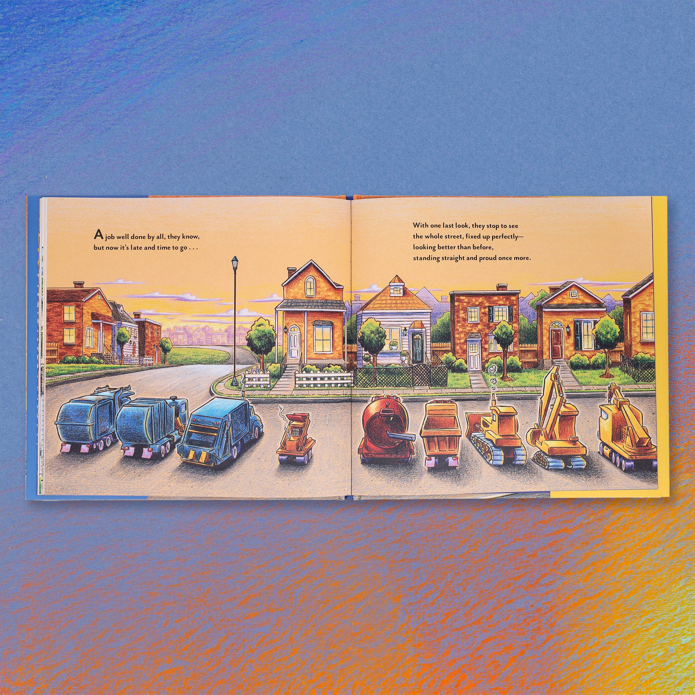 The construction crew is back and ready to help renovate! In this latest picture book in the New York Times bestselling series, everyone’s favorite construction crew is teaming up on a new and exciting adventure: cleaning up a neighborhood that needs some love. Since its debut more than a decade ago, Goodnight, Goodnight Construction Site and the series of books it launched have become beloved favorites of kids and parents alike, with millions of copies sold. This popular, timeless nighttime story continues to delight families everywhere! In their new adventure, the crew is working together with new friends—garbage trucks, roll-off trucks, container delivery trucks, and more!