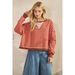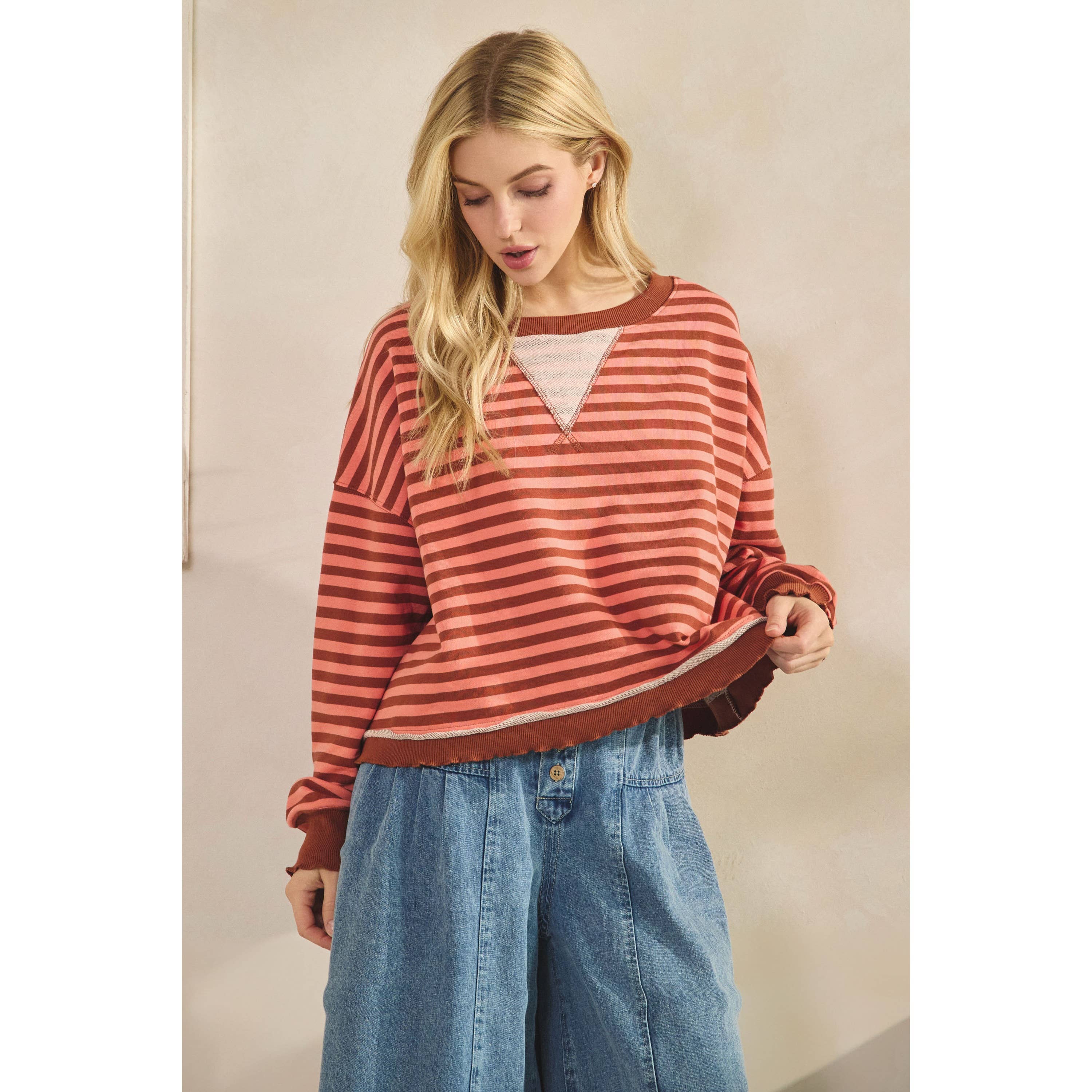 Cropped striped french terry top Model is 5'9 wearing a size small