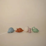 Make a splash at bathtime with the Mushie dino bath play set that includes three friendly dinosaurs and an egg with adorable baby dino nestled inside. Made from 100% food grade silicone, the soft material is easy for little hands to hold while wet or dry.