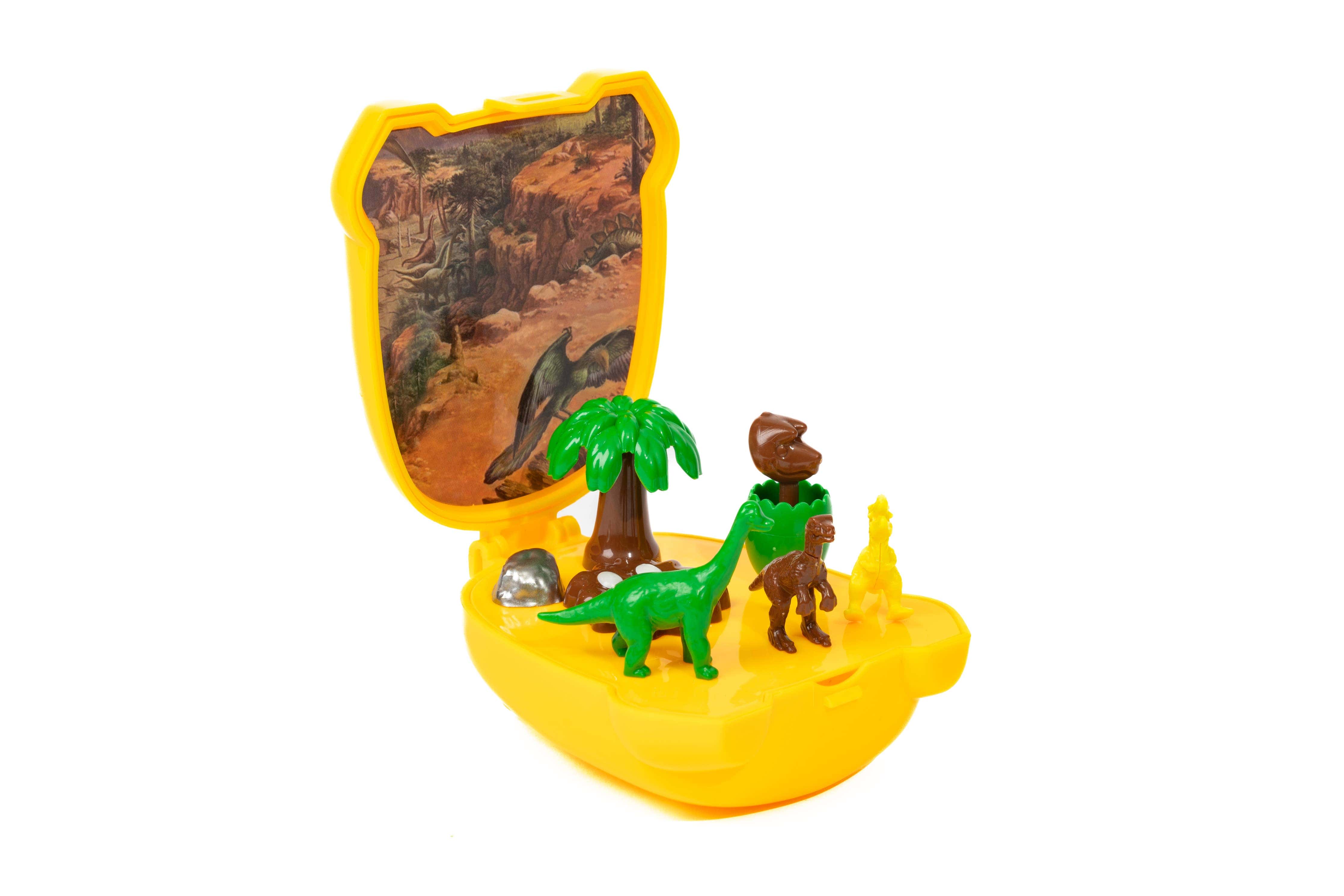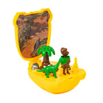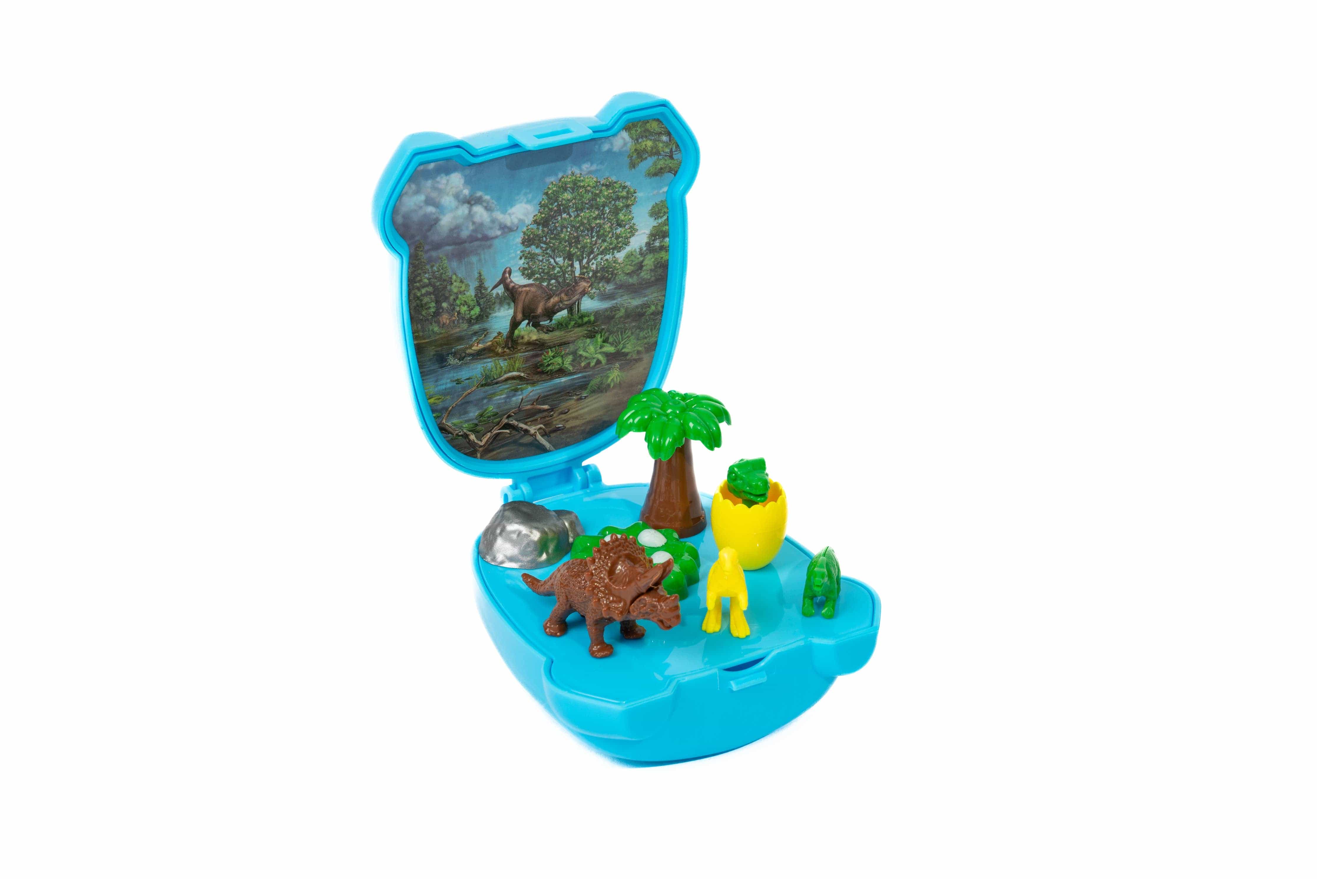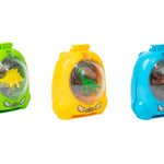 Set the scene for your new dino friend. Toysmith’s Dinosaur Mini Worlds come in a case shaped like a backpack. On the front of the backpack is a transparent lid showcasing a tiny dinosaur figurine. The lid can be opened to replace the dino and its background. Inside the backpack are additional background settings to replace in the front lid, 2 other dino figurines in assorted colors, and 5 other pieces to set the dinosaur’s world, such as trees and dino eggs. • Age Grade: 3+ •