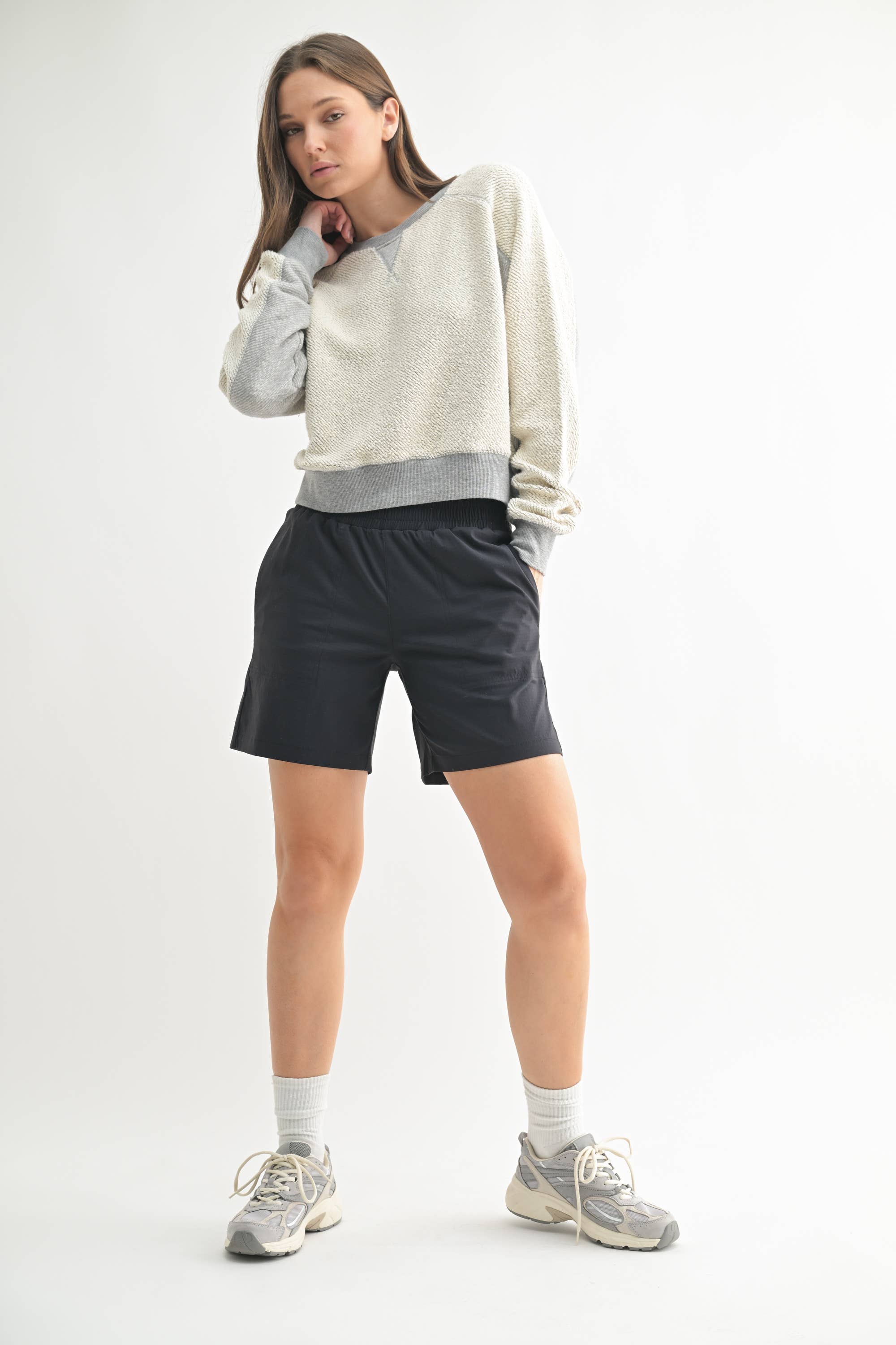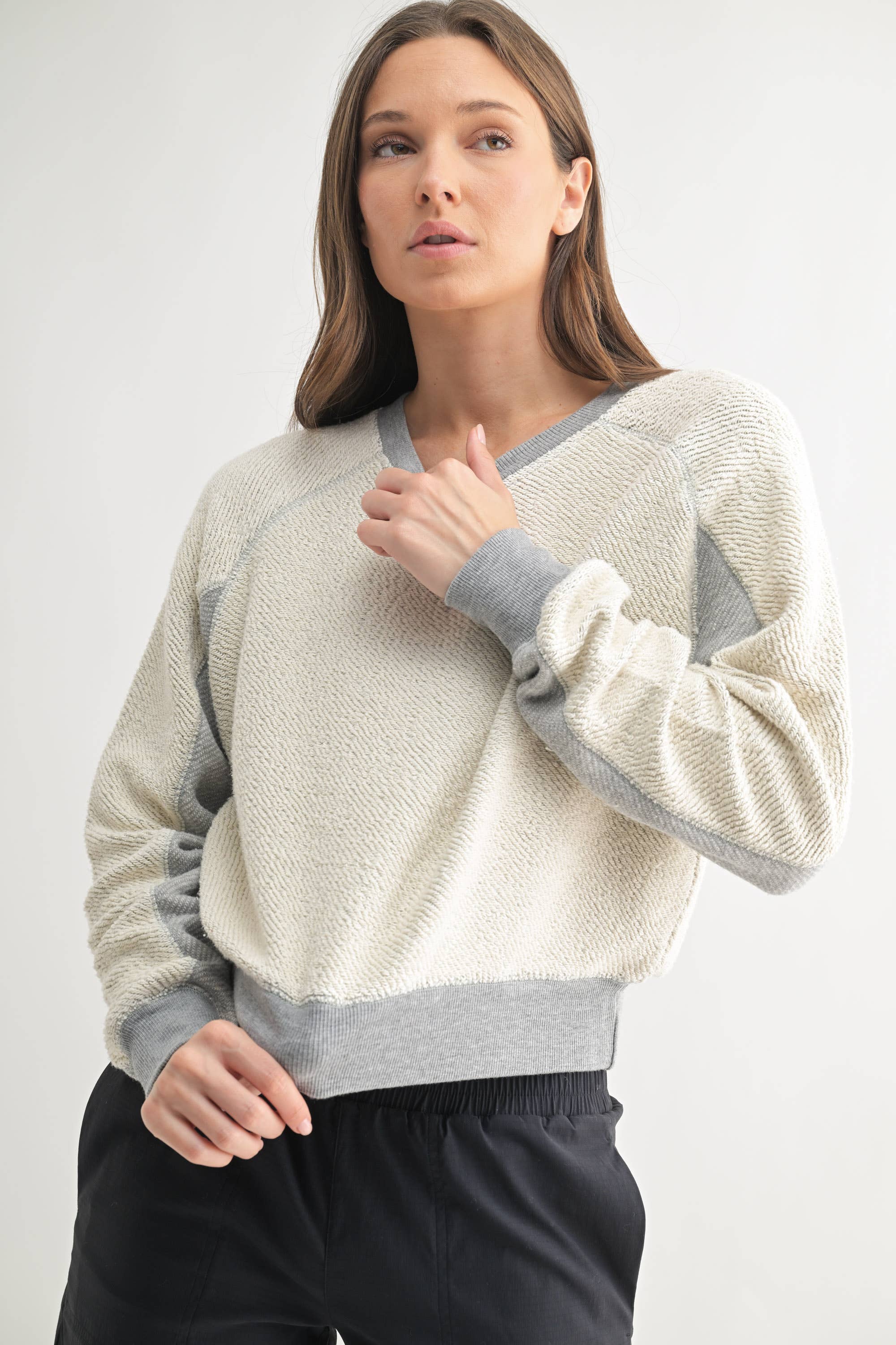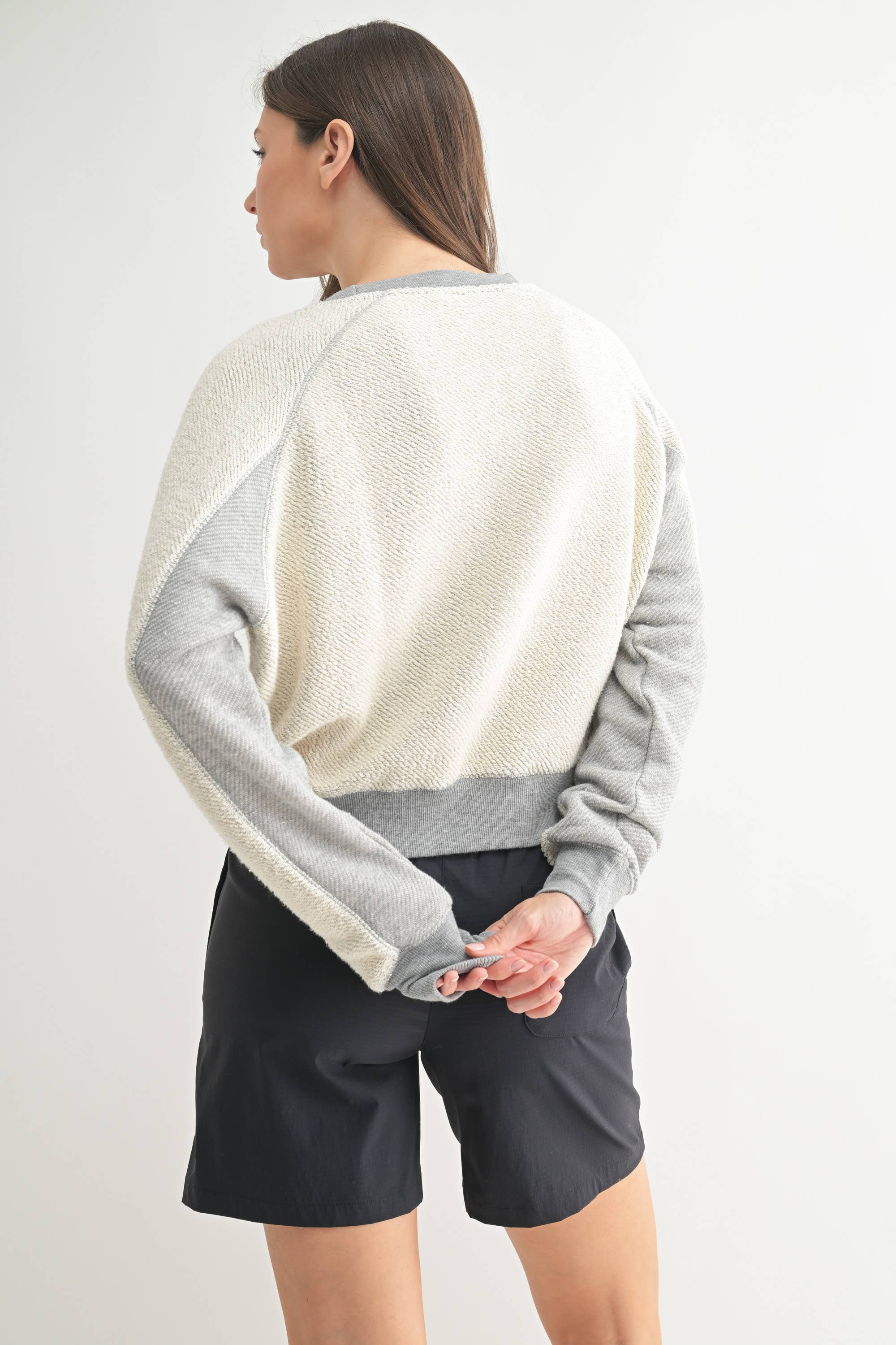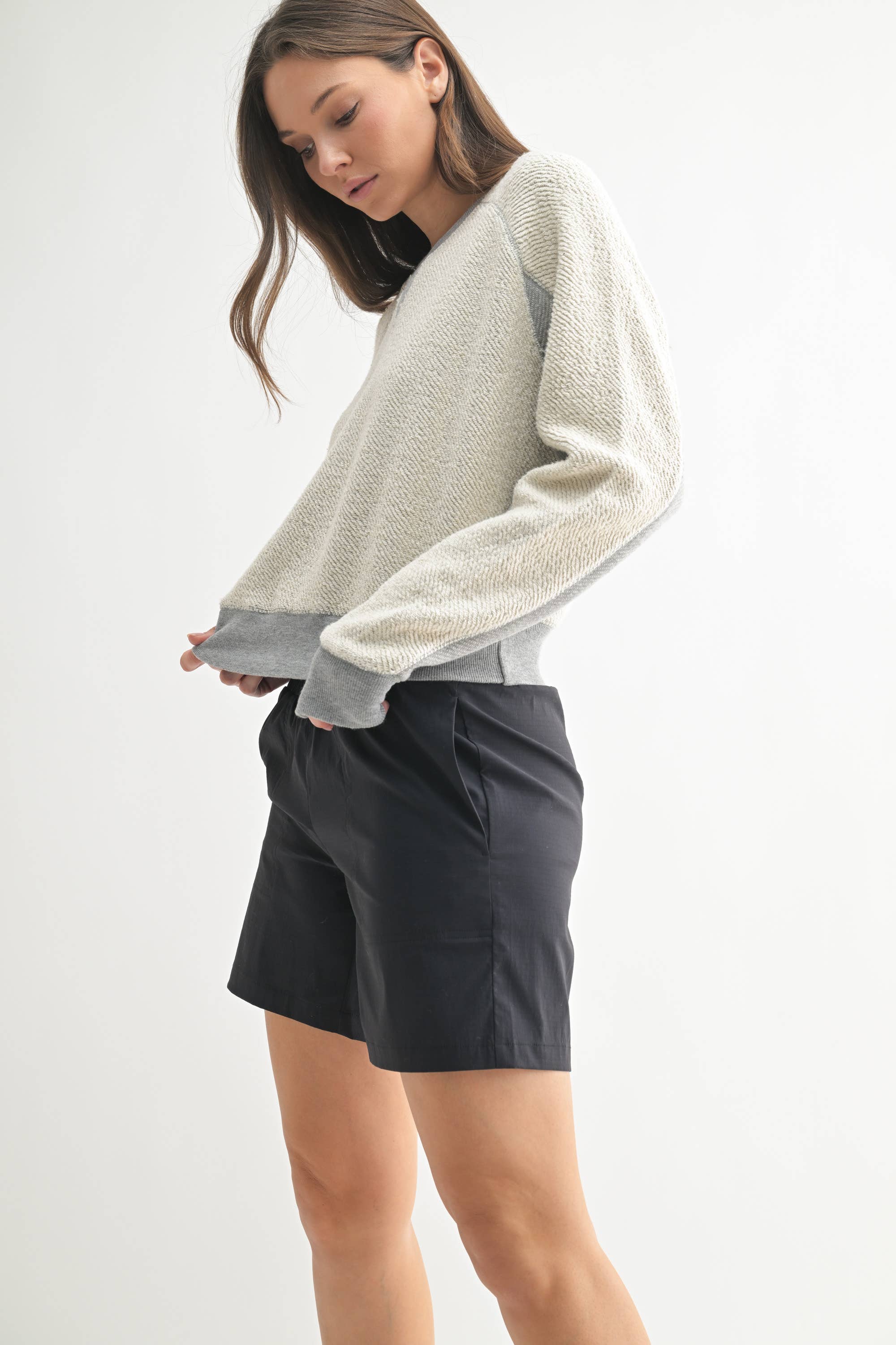 The Driftwood Crewneck Sweater brings cozy vibes with a stylish twist. Made from a chunky, textured soft cotton blend, this crewneck sweatshirt features bold contrast detailing at the sleeves, neckline, wrists, and waistband hems for a fresh, laid-back look. Perfect for layering or wearing solo, it’s the ultimate blend of comfort and effortless cool.