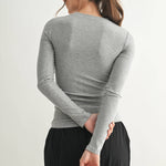 Pull down the sleeves when the temperature starts to drop. This versatile top can be worn with either a pair of leggings for a hike or with a pencil skirt for a semi-formal look.