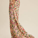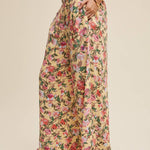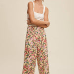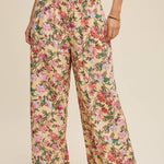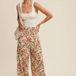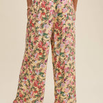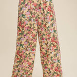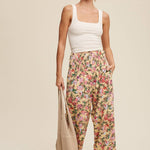These pants have a fully shirred waistband for a flexible and flattering fit. The wide-leg cut allows breezy movement and laid-back comfort. This pattern showcases a vibrant, painterly floral pattern on a soft backgrounds. Has a light weight fabric that is perfect for warmer weather and easy layering.