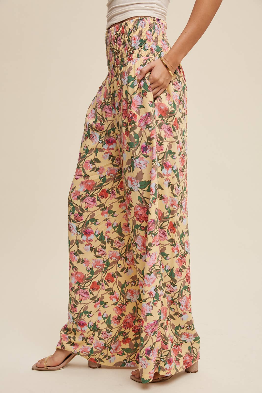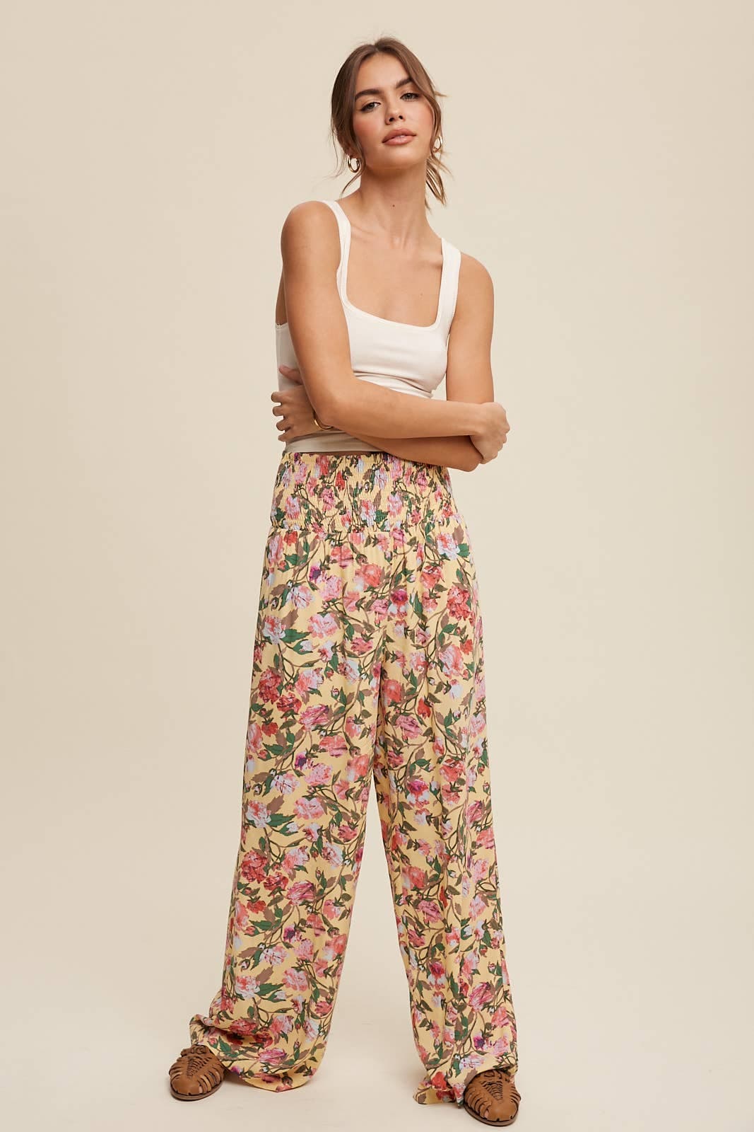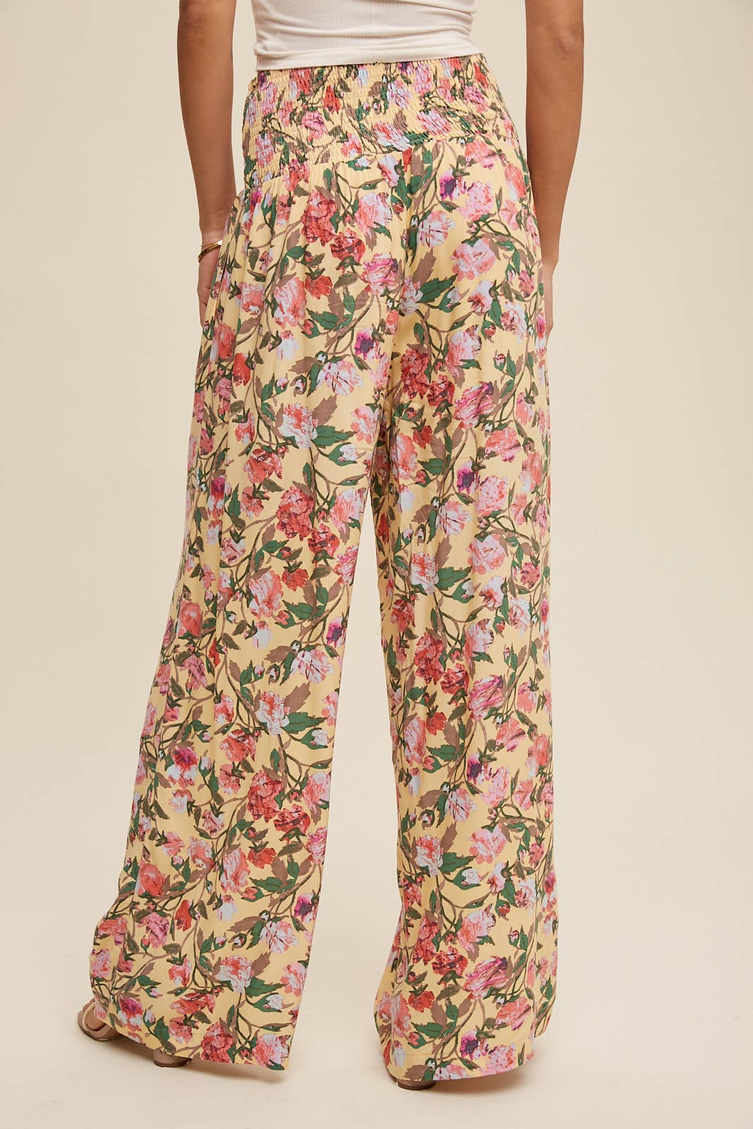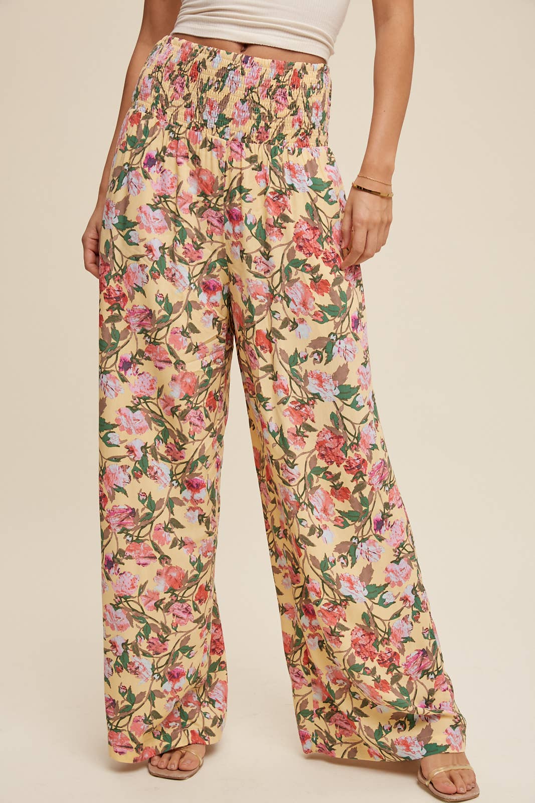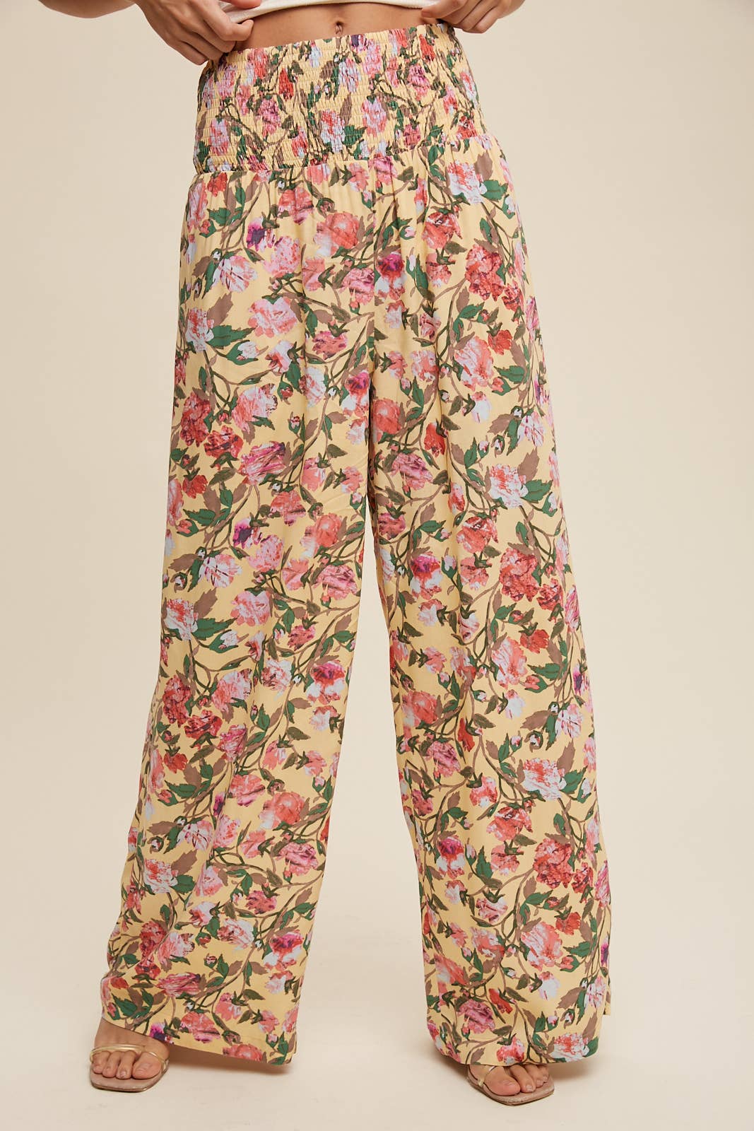 Floral Smocked Wide-Leg Pants