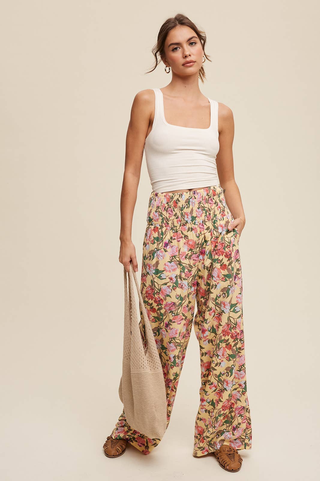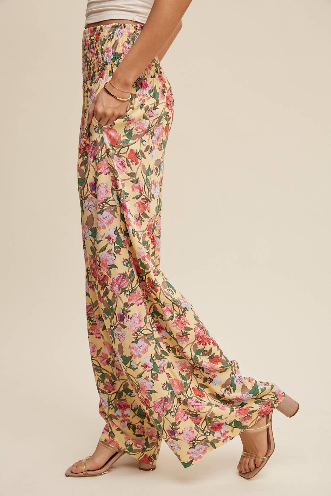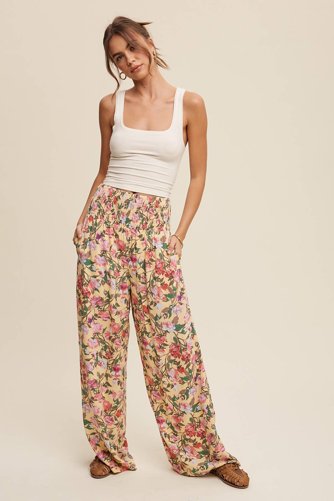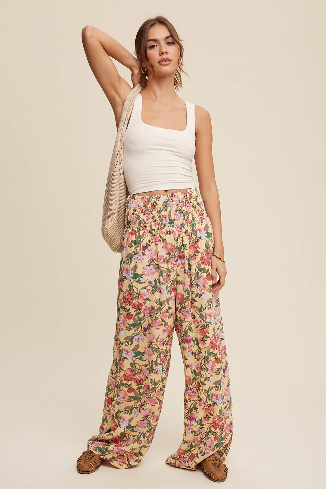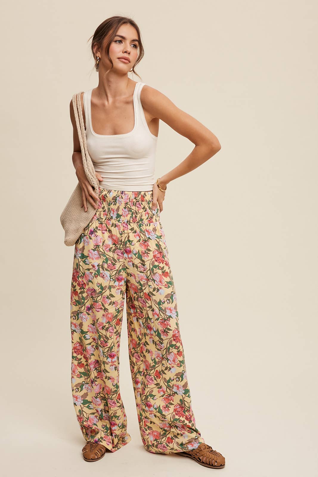 Floral Smocked Wide-Leg Pants