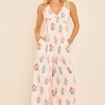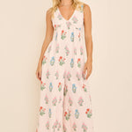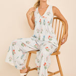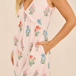 Floral Stripe V-Neck Backless Jumpsuit