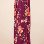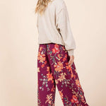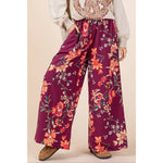 FLOWER PRINT ELASTIC WAIST MID RISE WIDE LEG PANTS