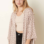 Light and breezy, this flower print maxi duster features an open front, dolman long sleeves, and ruffle details at the bottom. Perfect for layering over your favorite outfits.
