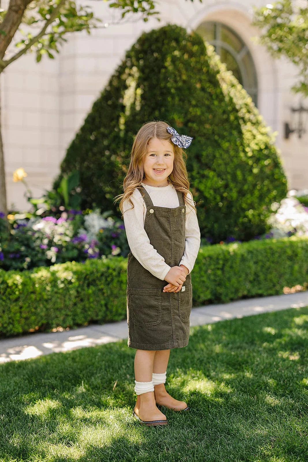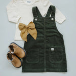 The green hue brings a warm, earthy tone to your child’s wardrobe, while the relaxed fit makes getting dressed simple and fuss-free. Front patch pockets add a playful touch (and a spot for little treasures!), making this dress as practical as it is adorable.