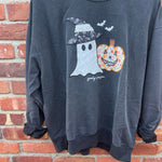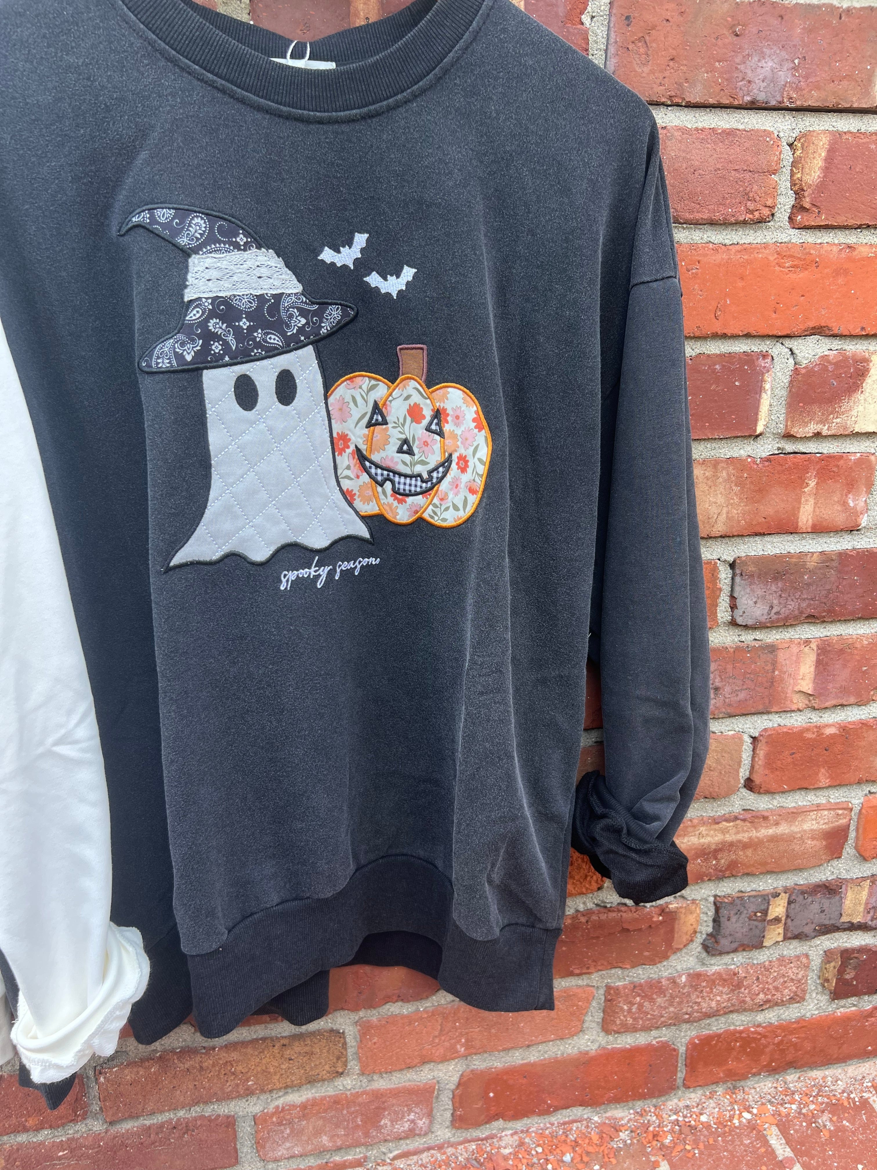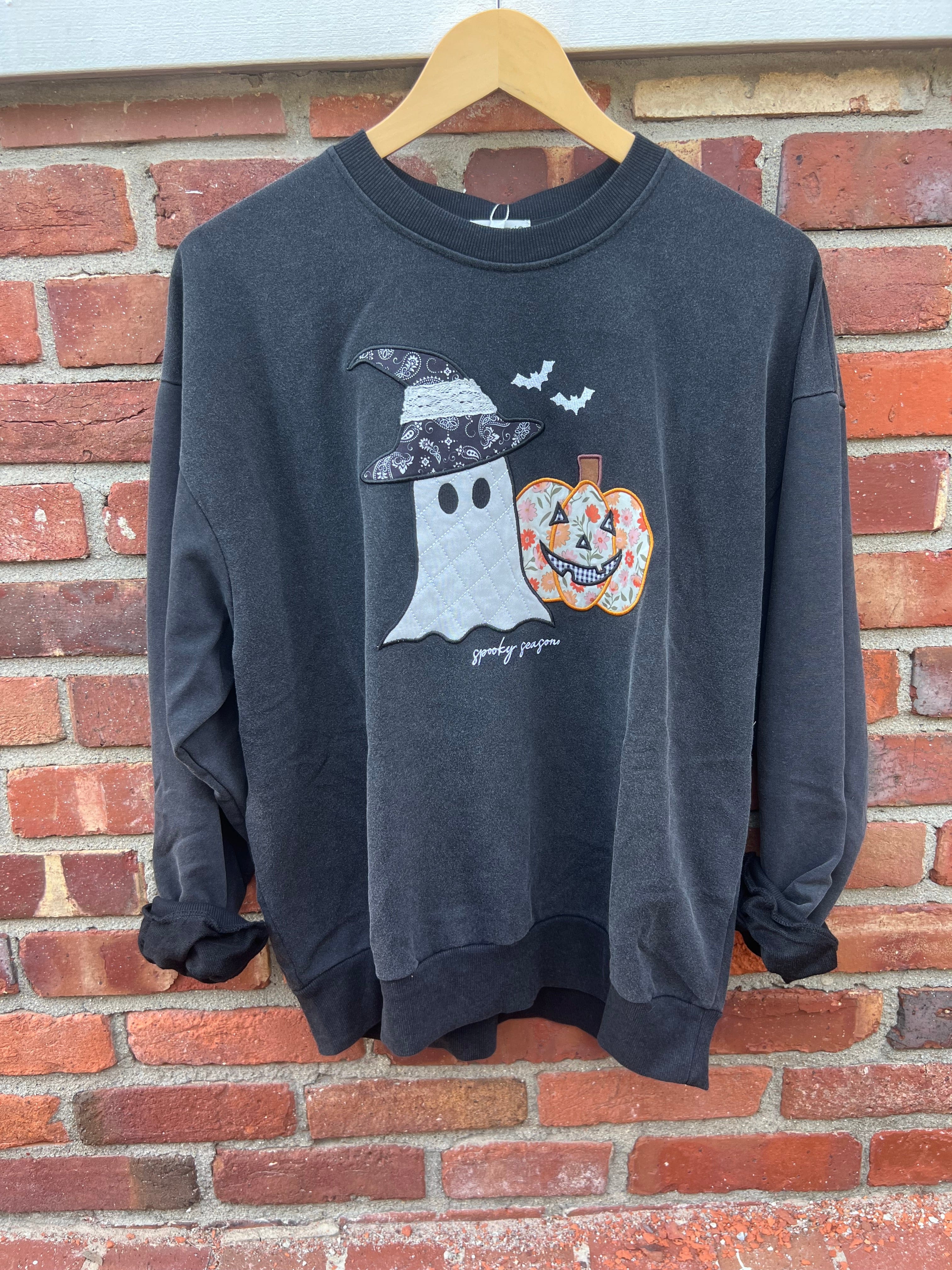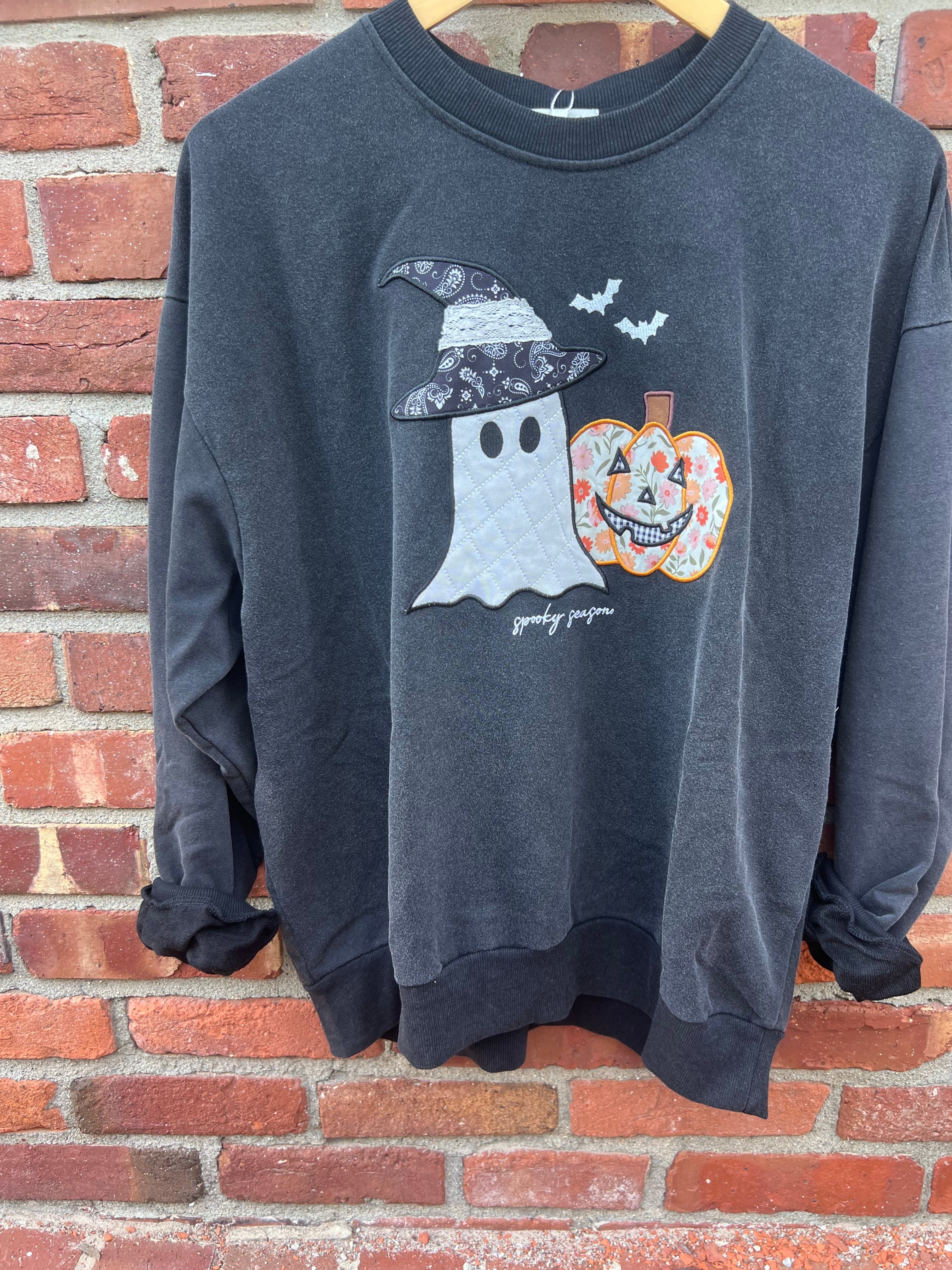 Halloween Patchwork Long Sleeve Crewneck With Mineral Wash