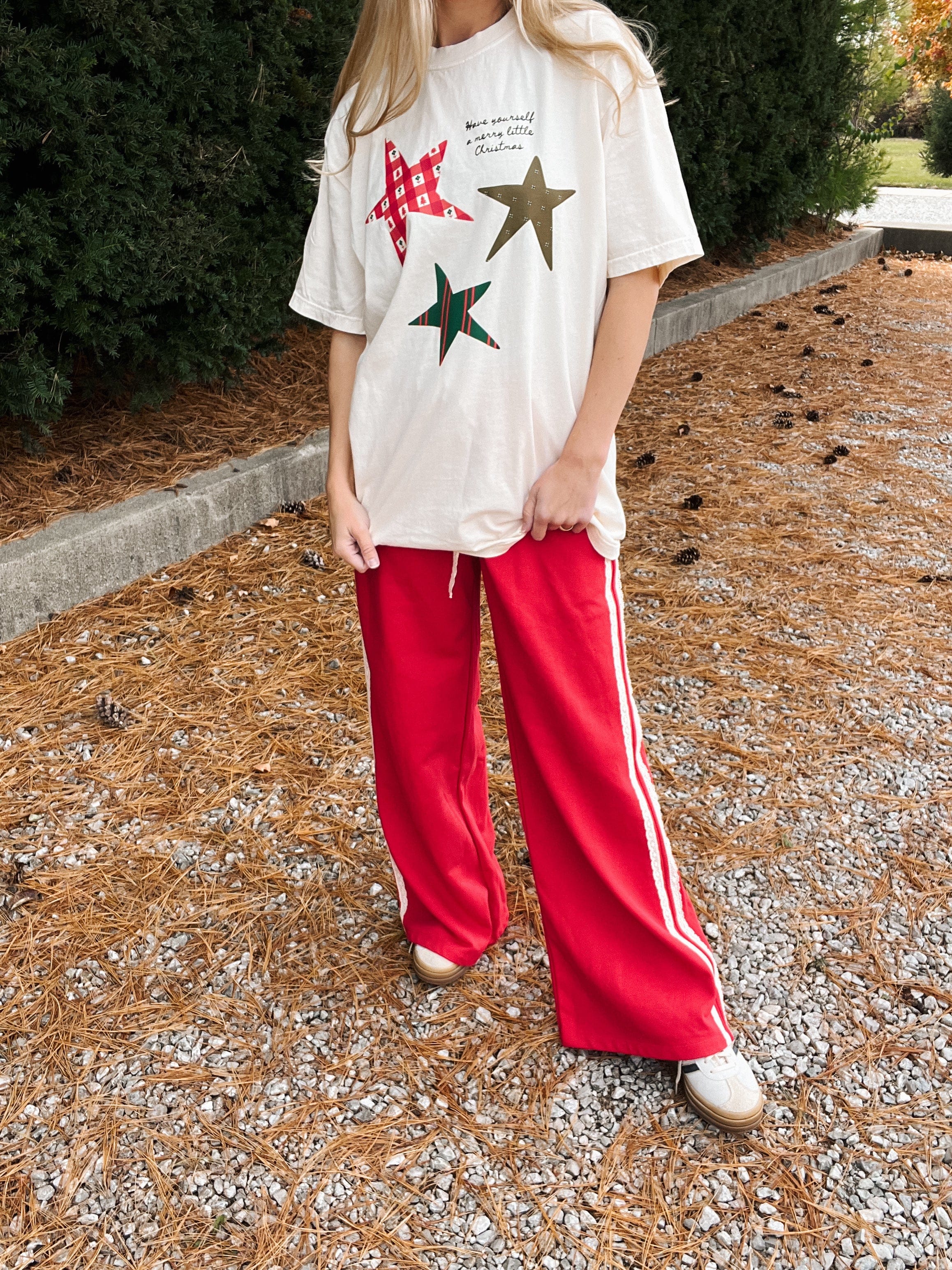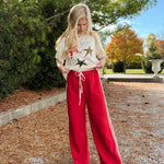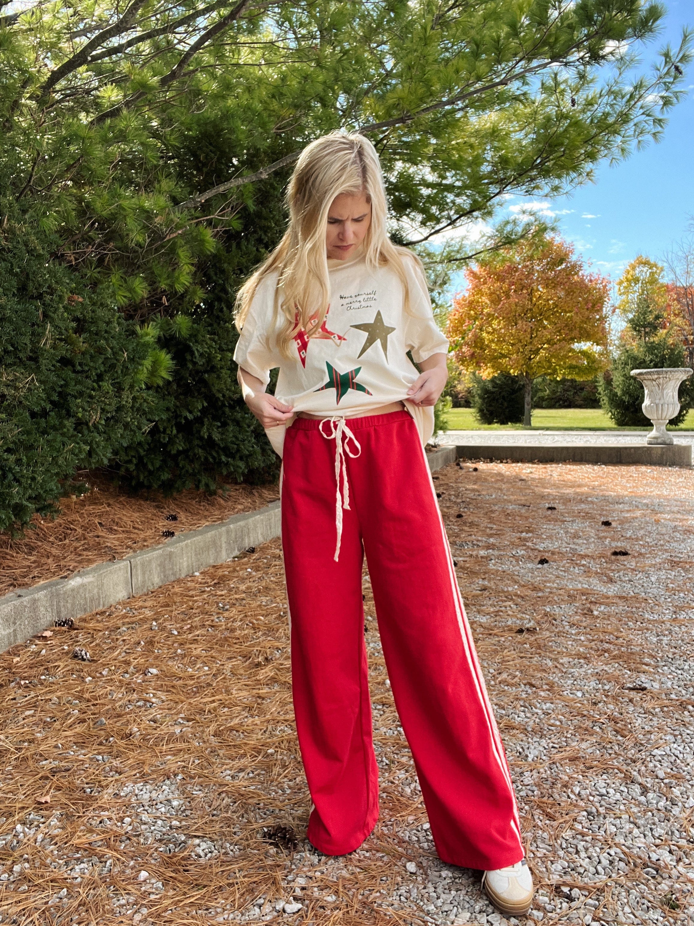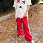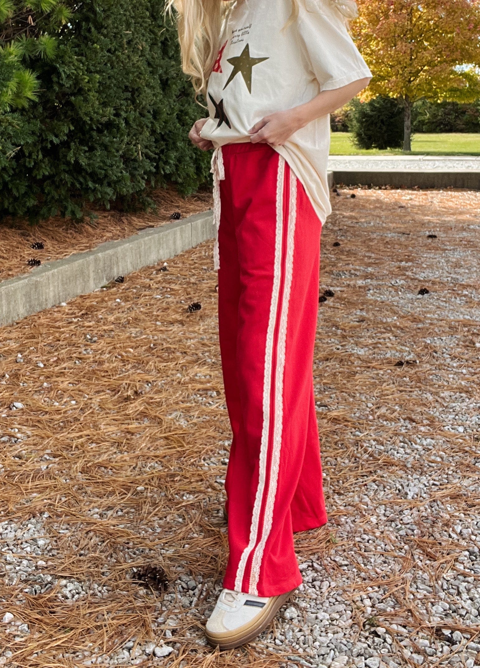 LACE STRIPED ELASTIC WAIST TERRY SWEATPANTS