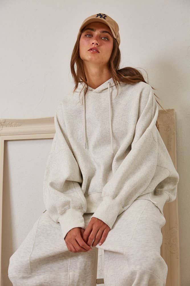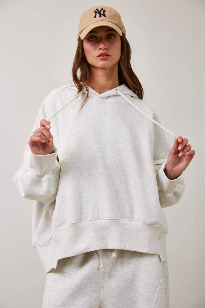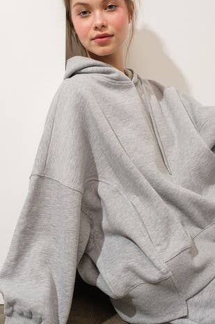 Sprint Movement Hoodie -Washed -Slouchy -Oversized Fit -Hip-length -Adjustable Drawstrings -Dropped shoulders -Slits at Both Sides, High-Low Hem -Banded Hemlines. -Hand Pockets -Seam Detailing Throughout -Imported Model's height is 5' 8" and wearing a size S
