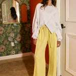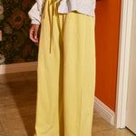 These high-waist terry sweatpants feature an elastic waistband with a drawstring, side pockets, and exposed seam details for a stylish, comfortable fit.