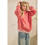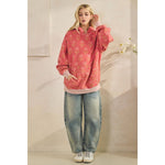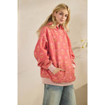Printed Fleece Hoodie Hand Wash Only Model is 5'9 wearing a size small