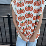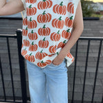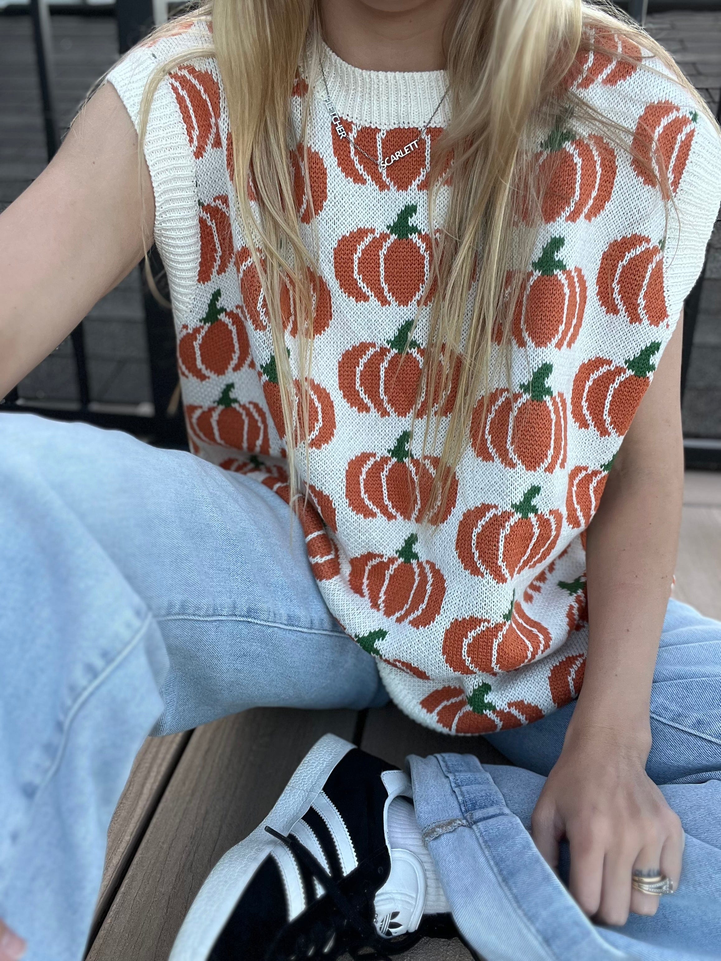 Pumpkin Print Sleevless Sweater Knit Top