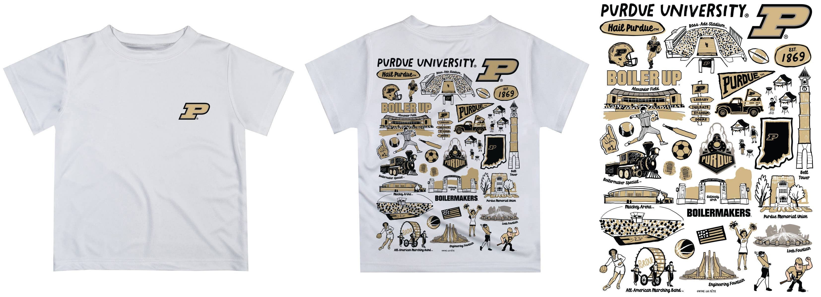 Purdue Boilermakers Hand Sketched Impressions Boys T-Shirt, 100% POLYESTER, Machine wash