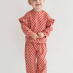 Dress your little one in the Red Velvet 2PC Set, featuring a rich red color adorned with a charming floral print. Made from cozy and soft knit fabric, this set includes a comfortable top with ruffle sleeves and matching pants with a gentle elastic waistband. Ideal for stylish, effortless dressing and festive occasions. Fabric Care Machine Wash Cold | Line Dry Do Not Bleach