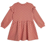 This dress features a classic floral pattern, ruffled shoulder details, and long sleeves for a cozy feel. The flowy, gathered skirt enhances its playful and elegant silhouette. Perfect for festive occasions. Fabric Care Machine Wash Cold | Line Dry Do Not Bleach