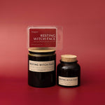 Apple, Vanilla, Cinnamon, Orange Peel, Clove, Nutmeg Unleash your inner witch this season with RESTING WITCH FACE. The perfect blend of ripe apple, spices, and fruit notes will awaken your senses. Made with natural essential oils like cinnamon, nutmeg, clove, orange, and cedarwood for a hauntingly delicious fragrance. Embrace your Resting Witch Face and indulge in this fan favorite candle. - 15 ounces - soy wax - hand-poured in Indianapolis