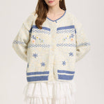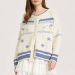 Features: Pastel-hued knit cardigan with its floral embroidery and soft blue accents. Materials & Care: Care: Hand wash only Sizing: Yaryna is 5'7", wearing a size S