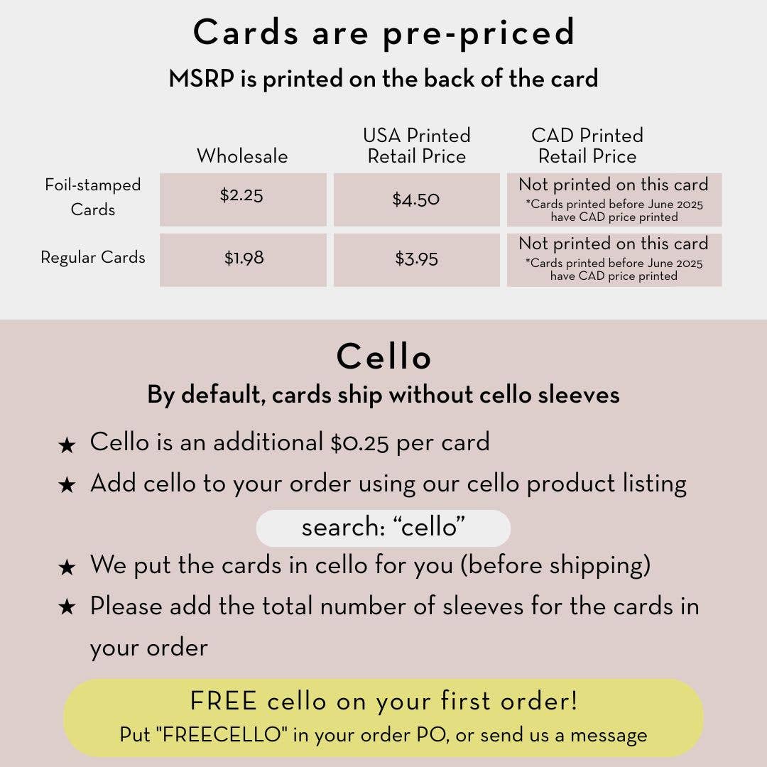 Inside verse: May your year ahead be filled with fun and happiness • Gold foil details • Illustrated by Emily Taylor • Pre-priced • Size: A6, 4.5" x 6.25" • Paired with a Kraft envelope • Printed in the USA on beautiful FSC-certified 10% post-consumer waste recycled paper. • By default cards come without cello packaging. Cello can be added to your order using our cello listing for an additional $0.25 each. • For FREE cello on your first order, please put "FREECELLO" in your order PO, or send us a message! About the artist: Emily Taylor draws and daydreams from her studio in a tiny town north of Toronto, Canada. Her work is best known for its feel of modern nostalgia, its painterly linework and joyful colors. Emily is inspired most by walks in nature and slow wanderings of antique markets.