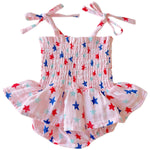 Experience the perfect blend of softness and breathability with this Splendid Stars Smocked Bubble! It's adorable and a perfect holiday outfit!