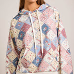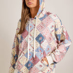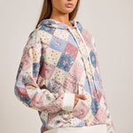 Step into spring with our Patchwork Quilted Hoodie. Crafted in playful pastel quilt prints, this hoodie blends cozy comfort with vintage charm. The relaxed fit, drawstring hood, and handy kangaroo pocket make it ideal for layering through breezy spring days and cool nights. Style with denim shorts or skirts for a light, casual spring look. spring hoodie, pastel hoodie, patchwork hoodie, quilt hoodie, vintage hoodie, casual spring outfit, transition season hoodie