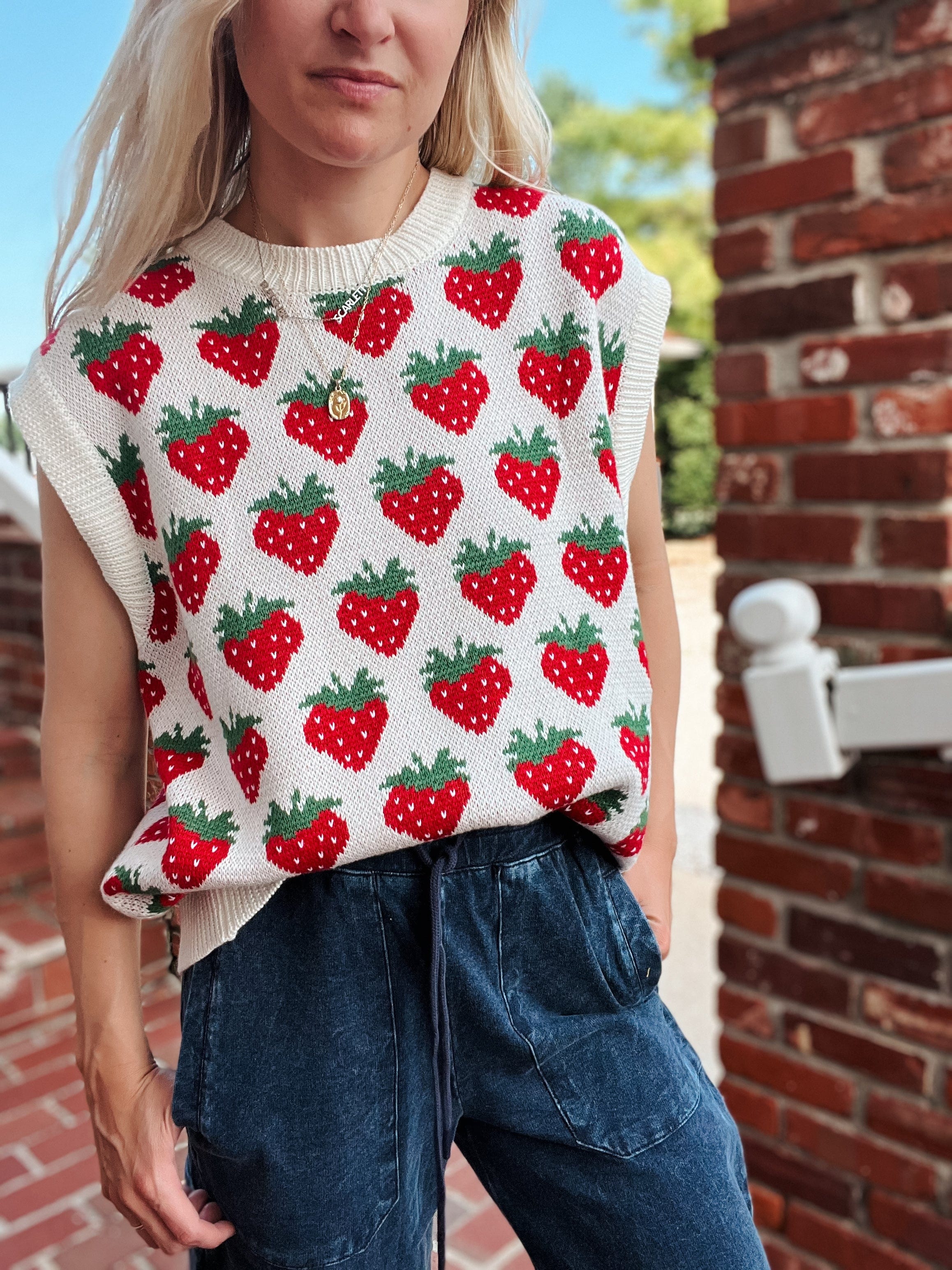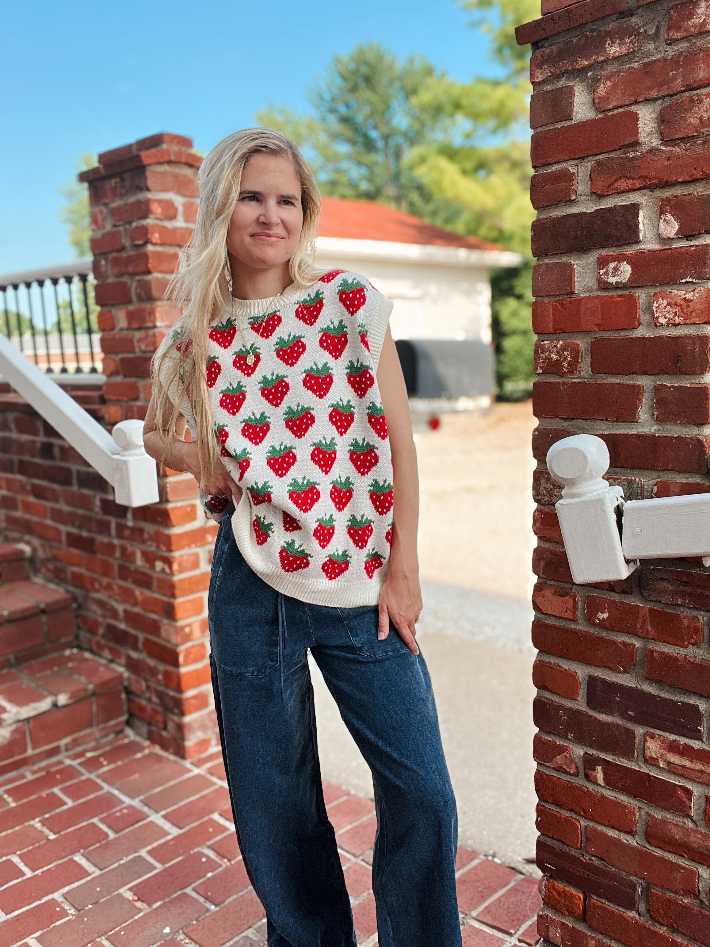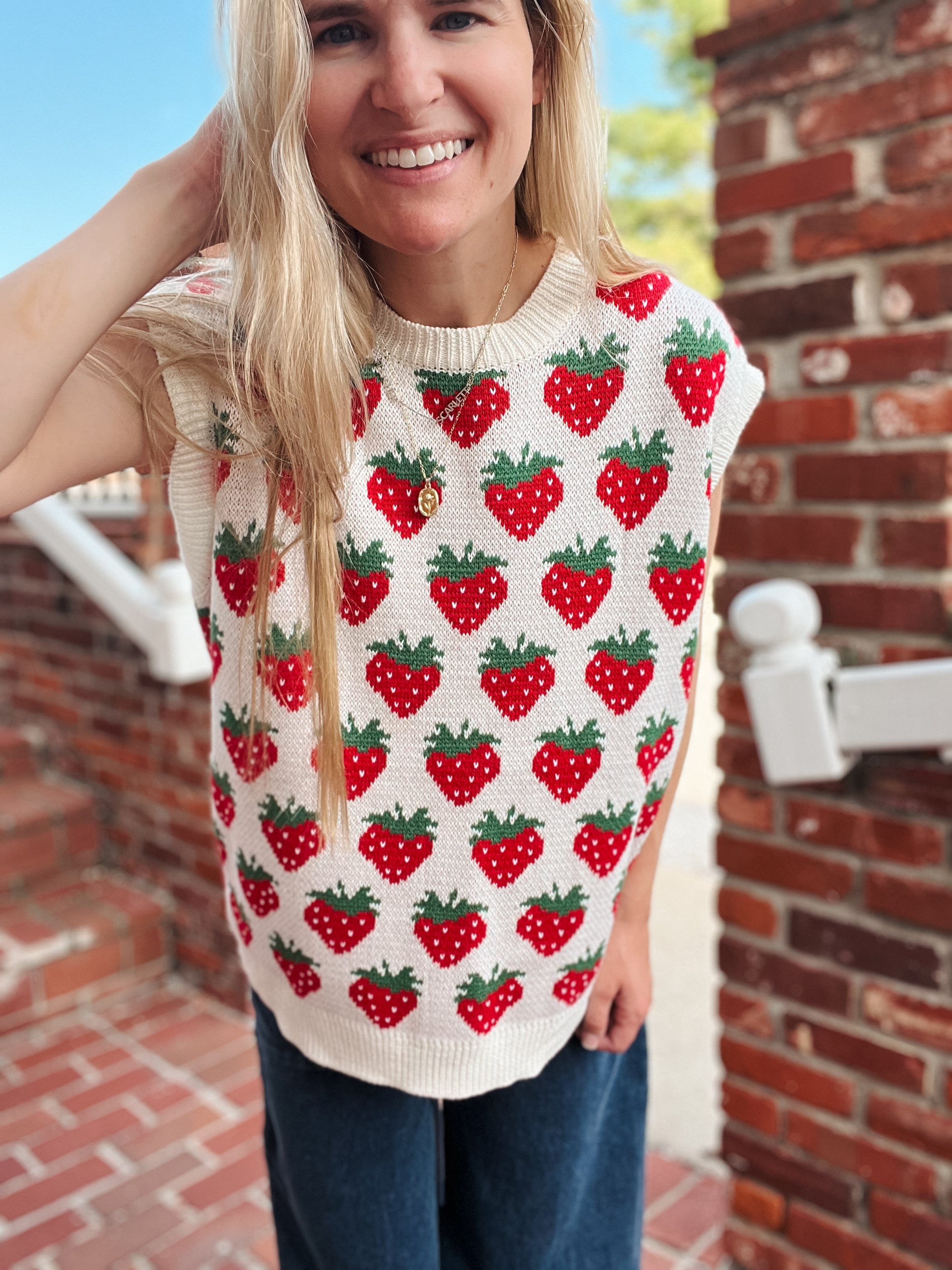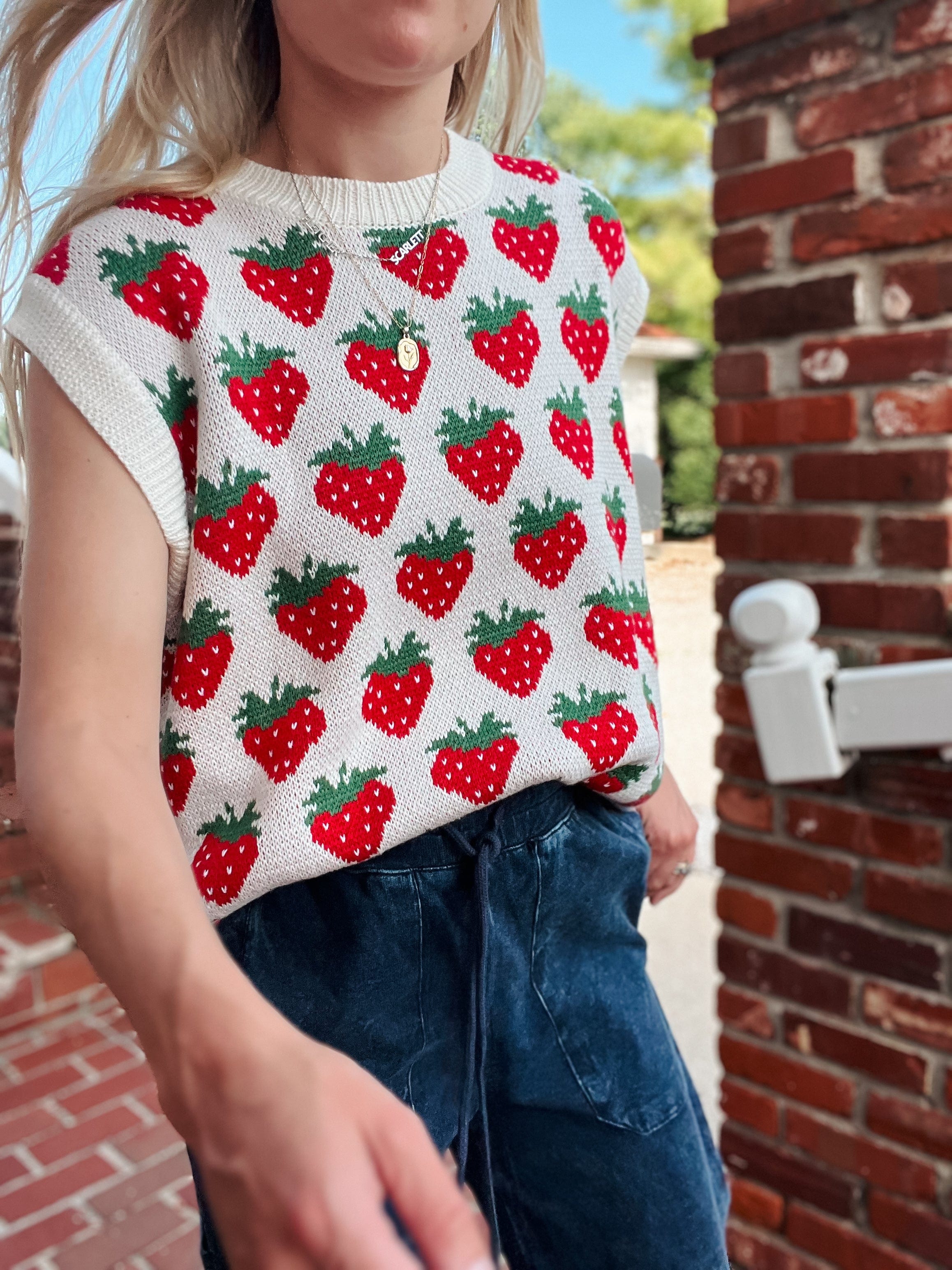 Strawberry Oversized Sleeveless Sweater Knit Top