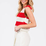 STRIPED V-NECK CROPPED SWEATER VEST TOP:
