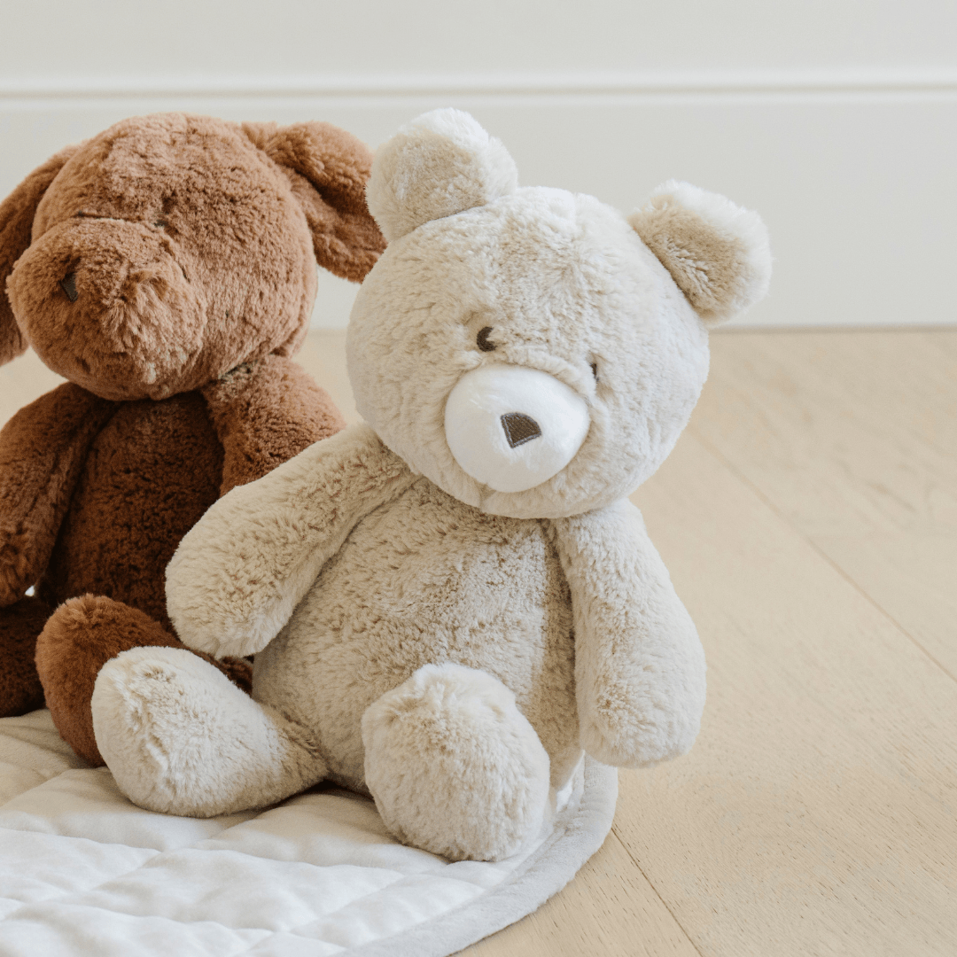 A new way to play! Designed as the perfect companions to our beloved animal rockers and chairs, or a sweet stand alone addition to play time! Made from our signature lush fabric, these cuddly, soft-limbed friends are available in Bunny, Puppy, Bear, Elephant, and Lamb. Built to grow, travel, and explore with your child.