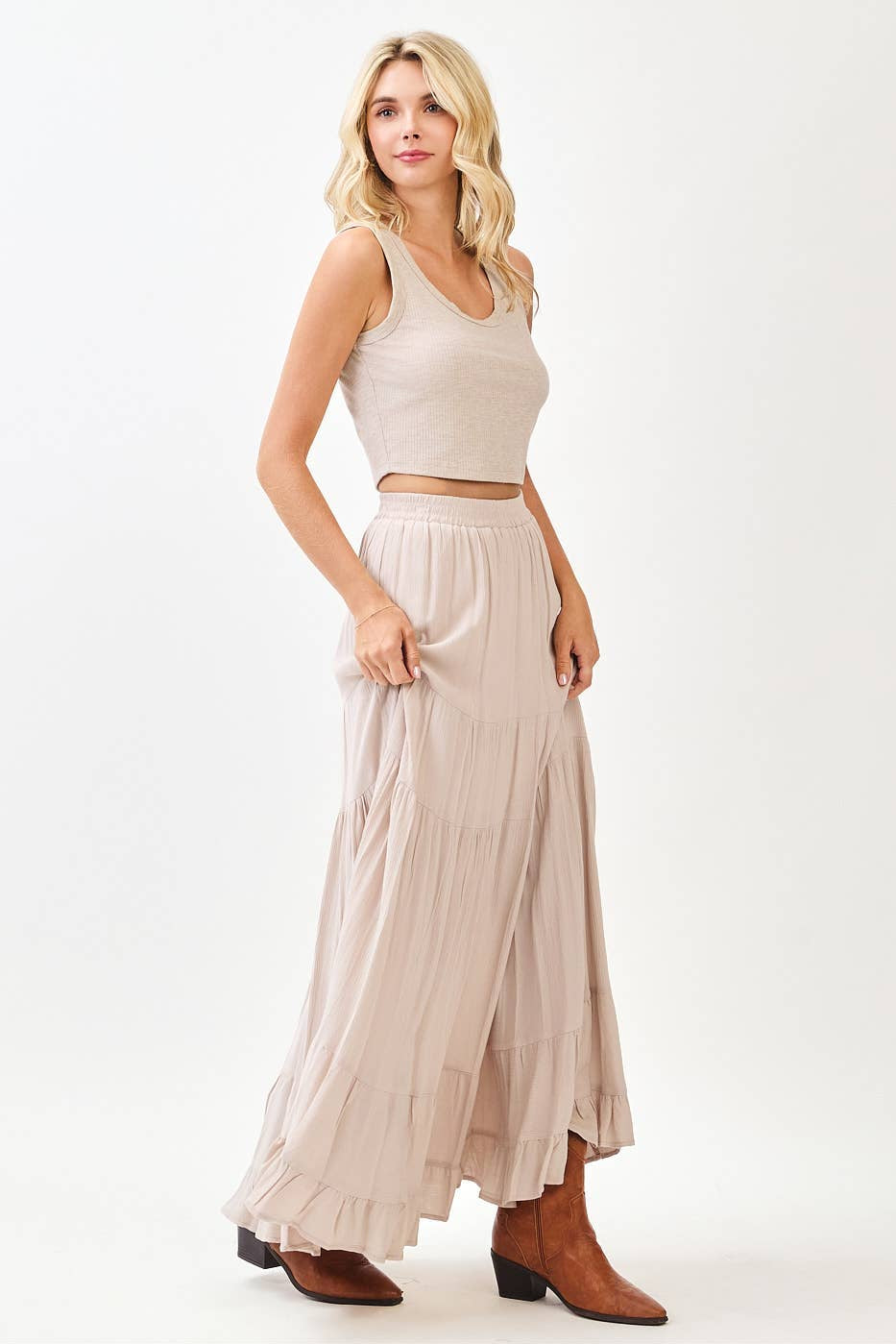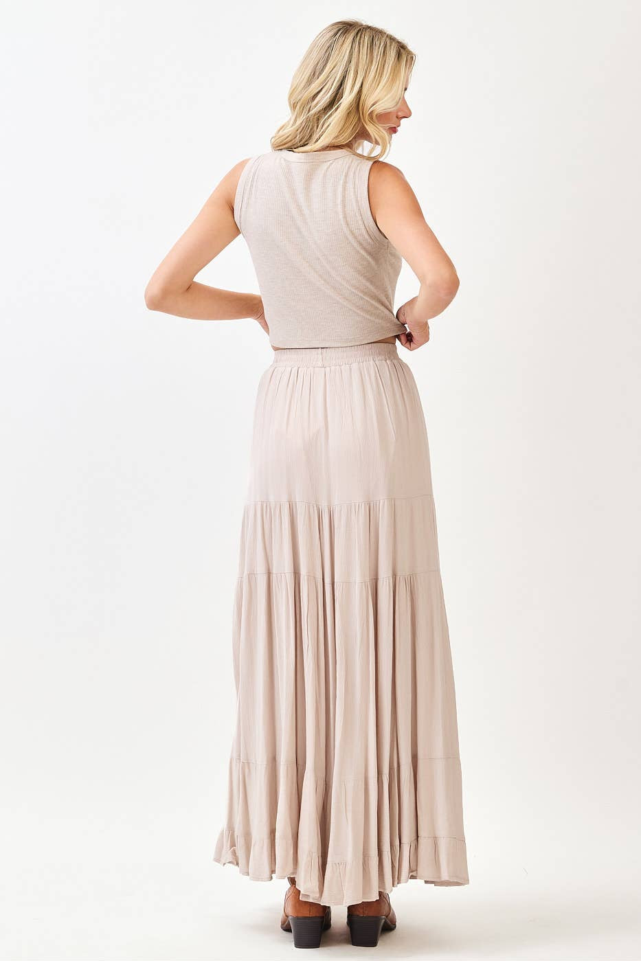 TIERED FLOWY ELASTIC WAIST LINED MAXI SKIRT
