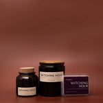 Plum, Cinnamon, Violet, Orange, Cedar, Vanilla, Cherry Bold. Sultry. Deliciously dark. Witching Hour mixes ripe plum, sweet cherry, and violet petals with warm cinnamon, woody cedar, and smooth vanilla for a fragrance that’s equal parts mysterious and inviting. Light it when the sun dips below the horizon and the night feels just a little bit magical. - 7 ounces - soy wax - hand-poured in Indianapolis