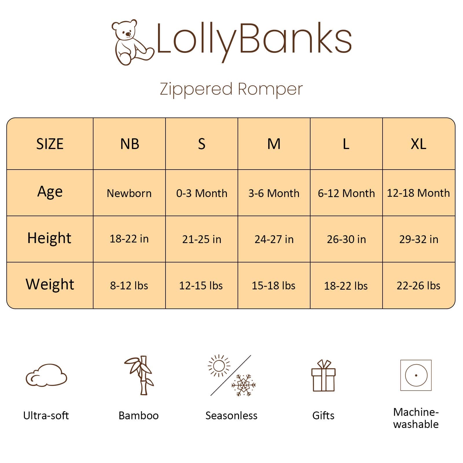 Soft & Breathable Fabric – Keep your baby cozy all day, free from harmful substances, and gentle on sensitive skin. Stretchy Comfort – Stretchy fabric ensures easy movement and long-lasting fit as your baby grows. All-Season Wear – This breathable onesie is perfect for every season. Its exclusive LollyBanks prints make it an ideal baby shower or special occasion gift. Convertible Sleeves & Legs – Fold-over cuffs and foot openings offer versatility, keeping hands warm or allowing free movement. Convenient Diaper Changes – A premium 2-way Y.K.K. zipper allows quick, hassle-free diaper changes, ensuring comfort and saving time.